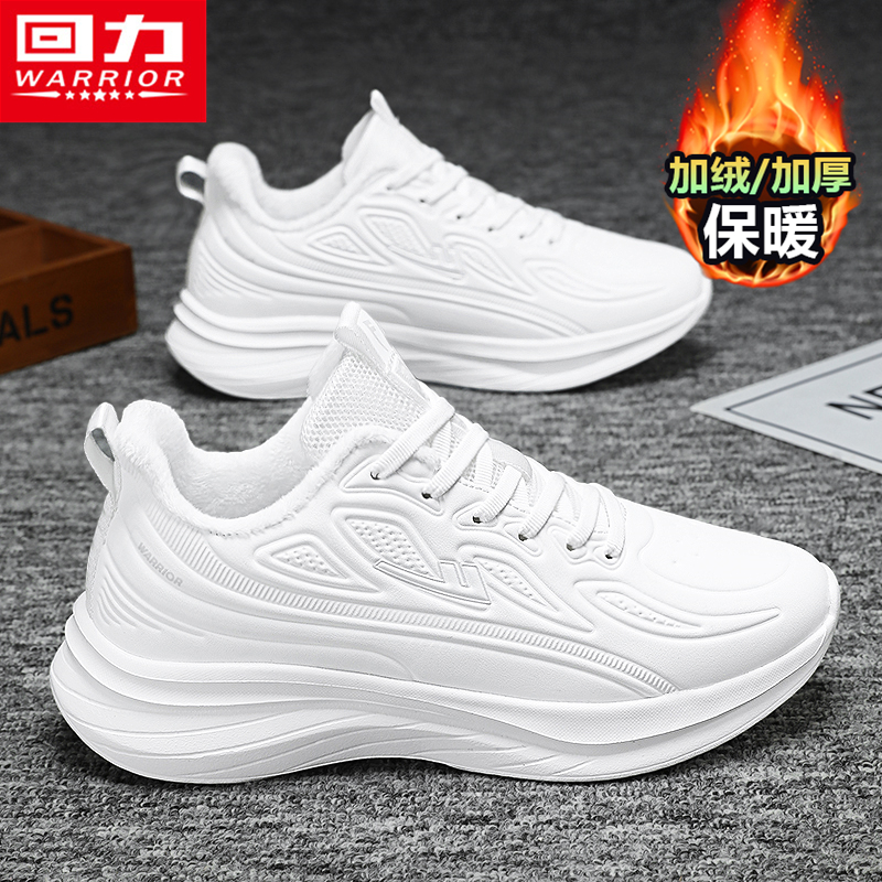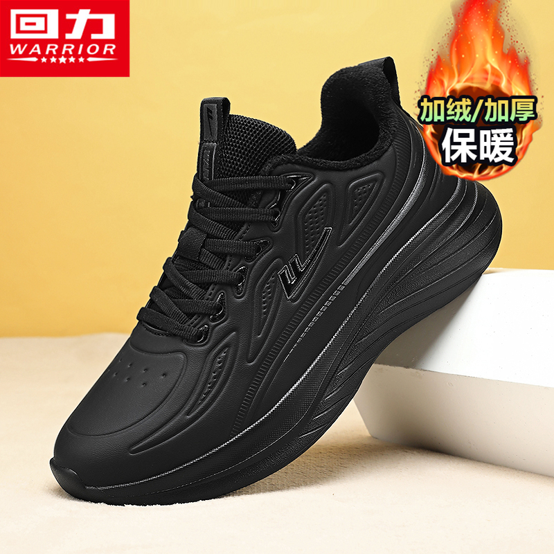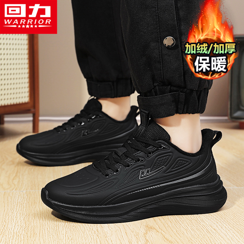 跑步防水老爹潮鞋 回力男鞋 皮面休闲大码 运动加绒保暖黑色棉鞋 冬季