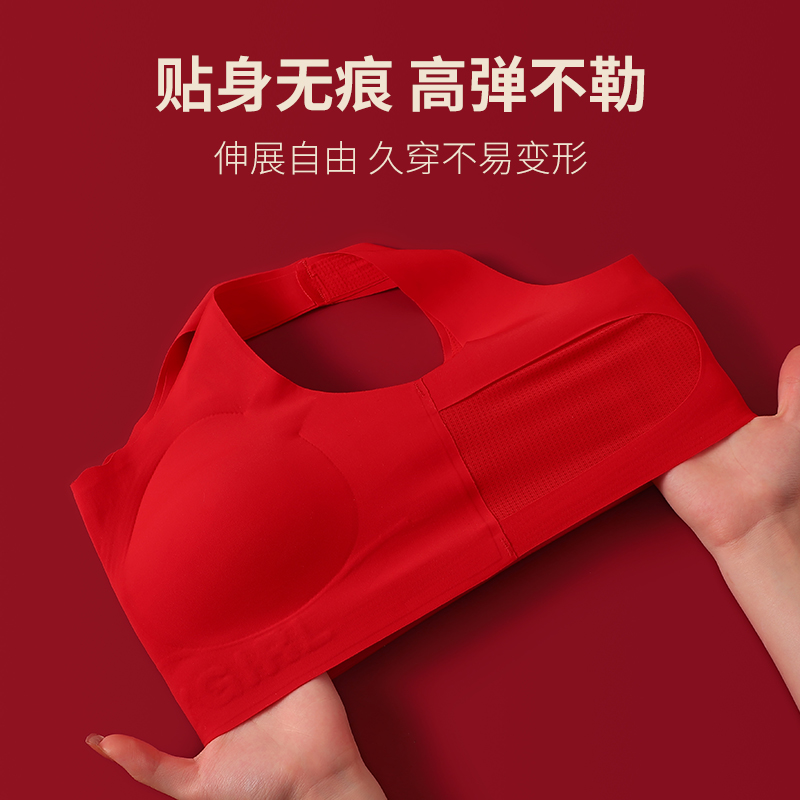无钢圈文胸结婚属蛇年 女套装 本命年文胸内衣套装 无痕红色内衣内裤