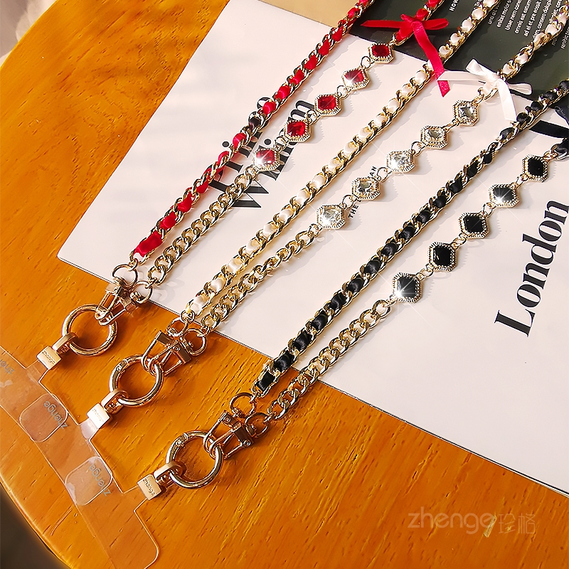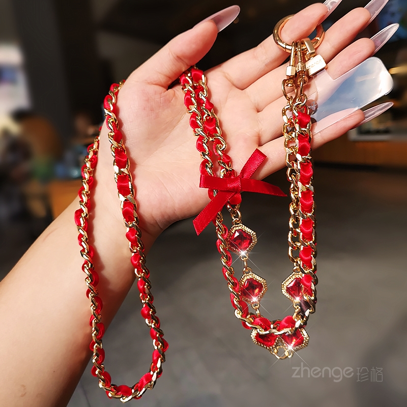 高端新品 手机挂链女士斜挎长款 超好看小香风蝴蝶结丝带金属钮链户外旅游行逛街包包链可肩背带手机壳挂绳时尚