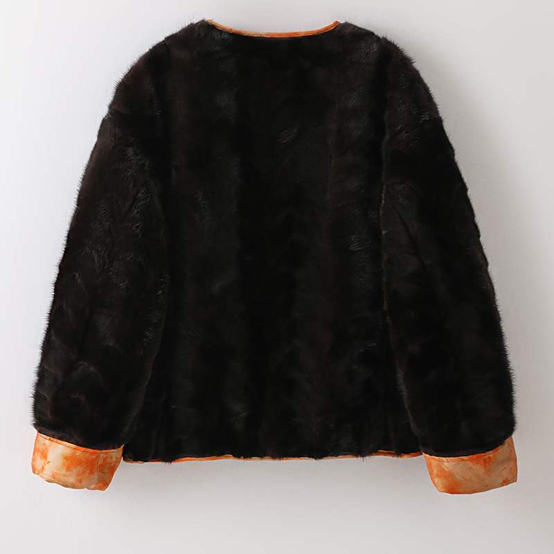 裘皮外套10.9 拼貂2025冬新款 水貂皮大衣女短款 国风二面穿年轻款