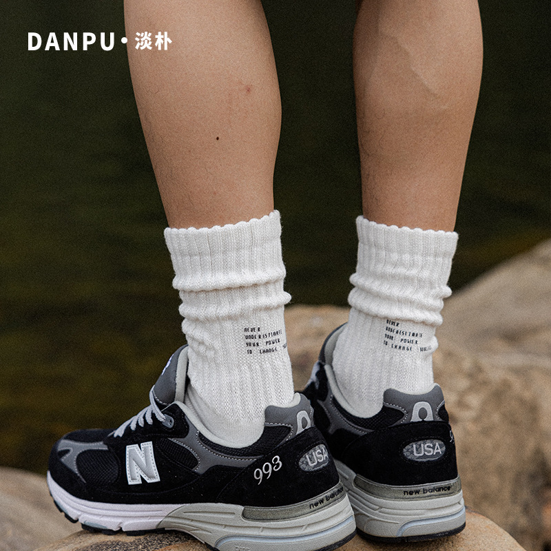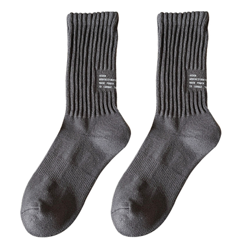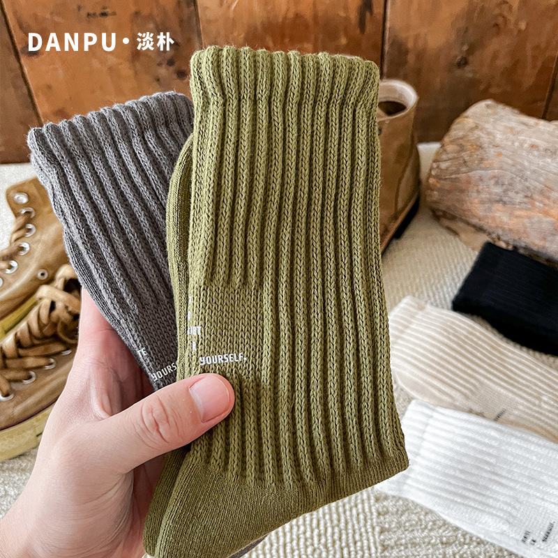 粗线纯棉袜子男袜工装 风加厚堆堆毛圈后印字母吸汗中筒秋冬长袜