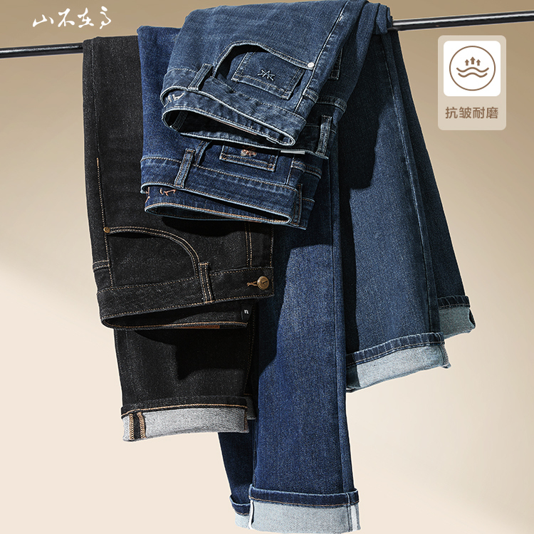 男士 HLA 休闲直筒长裤 25秋新款 海澜之家山不在高黑色复古风牛仔裤