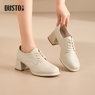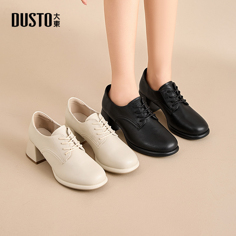 女2025秋款 不累脚乐福鞋 平底通勤女鞋 秋季 系带皮鞋 大东dd深口单鞋