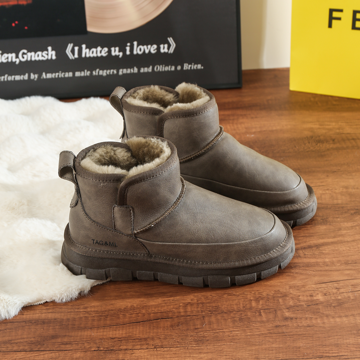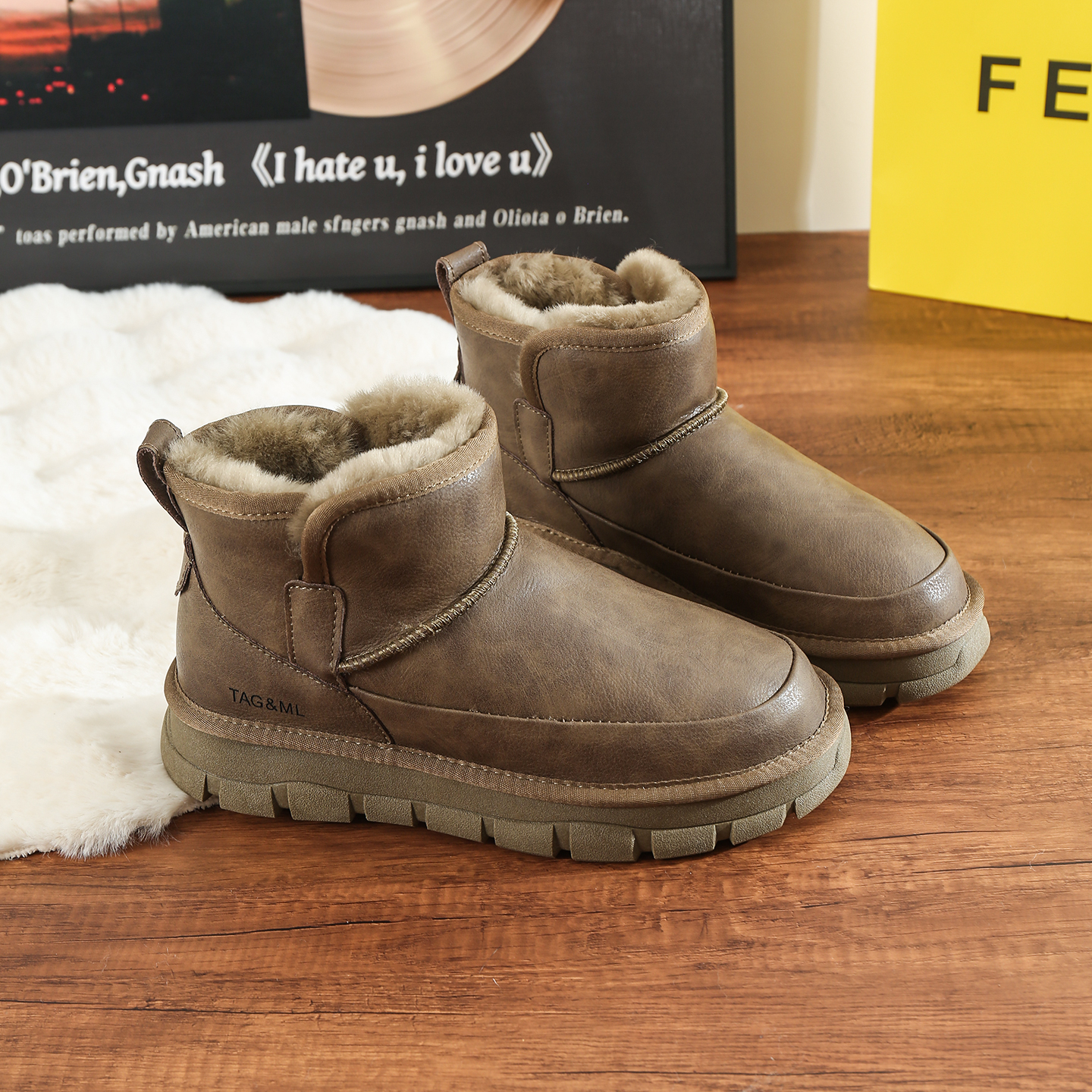 皮毛一体棉鞋 男鞋 全羊毛一脚蹬加厚保暖羊毛靴男士 雪地靴新款 冬季