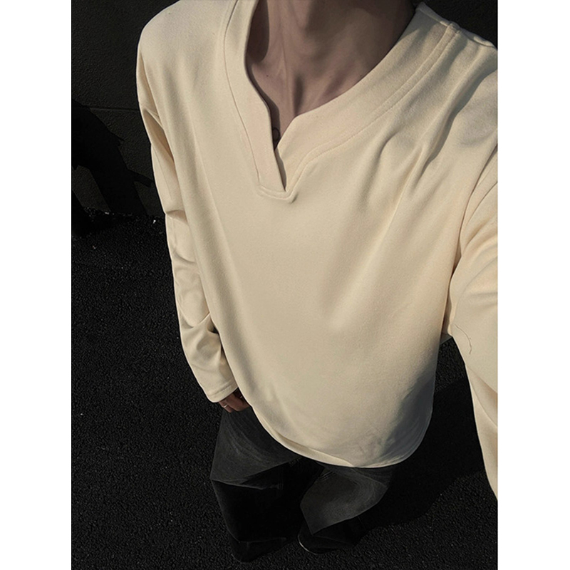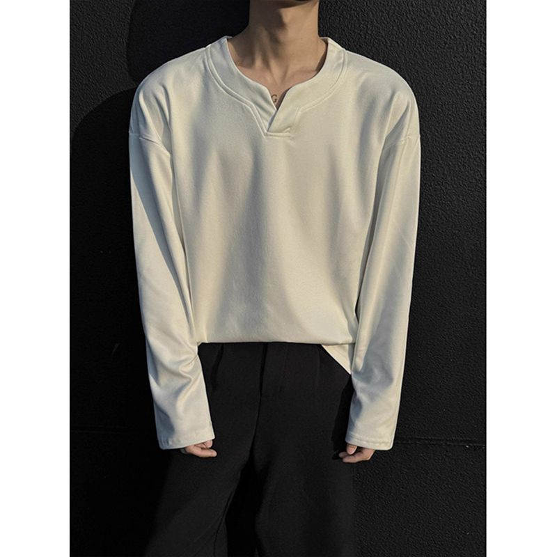 卫衣白色2025秋冬内搭打底衫 260g重磅小领口长袖 T恤男纯棉春秋款