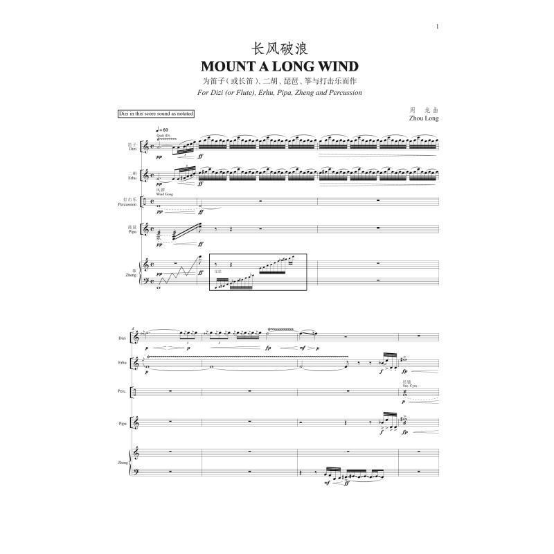 Zheng 或长笛 筝与打击乐而作 琵琶 长风破浪 Dizi Pipa and Erhu 二胡 flute 社 percussi周龙上海音乐出版 for 为笛子