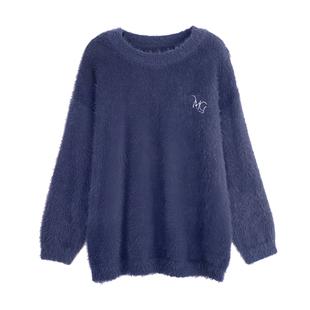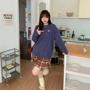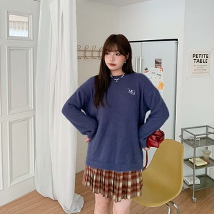 YUZI鱼子针织温柔紫毛衣慵懒风特大码 胖mm 秋冬软糯百搭高级感女装