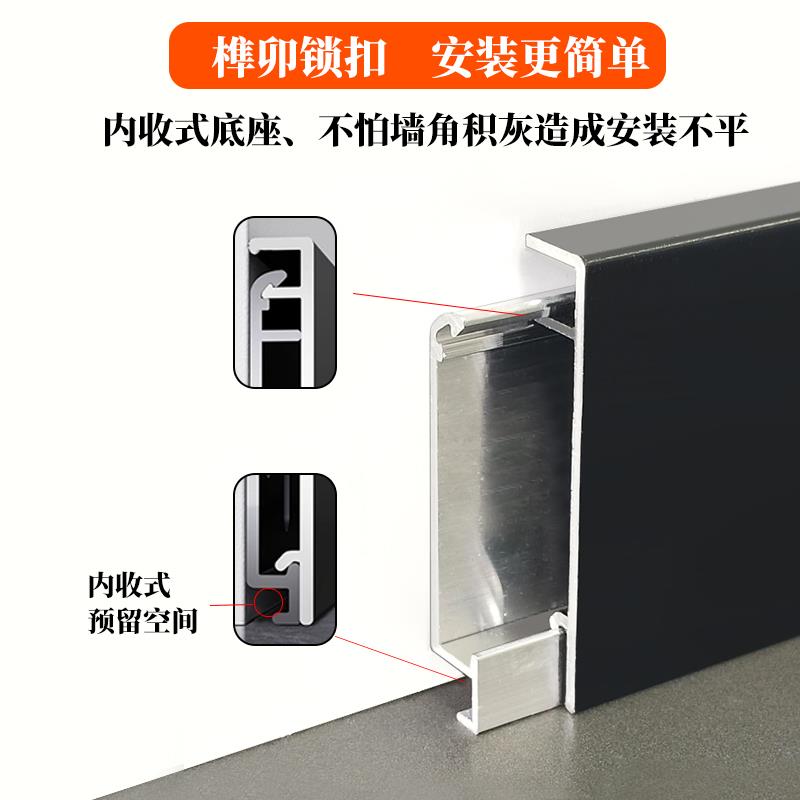直面铝合金卡扣踢脚线圆弧踢脚板极窄贴脚线极简弧形墙金属地脚线