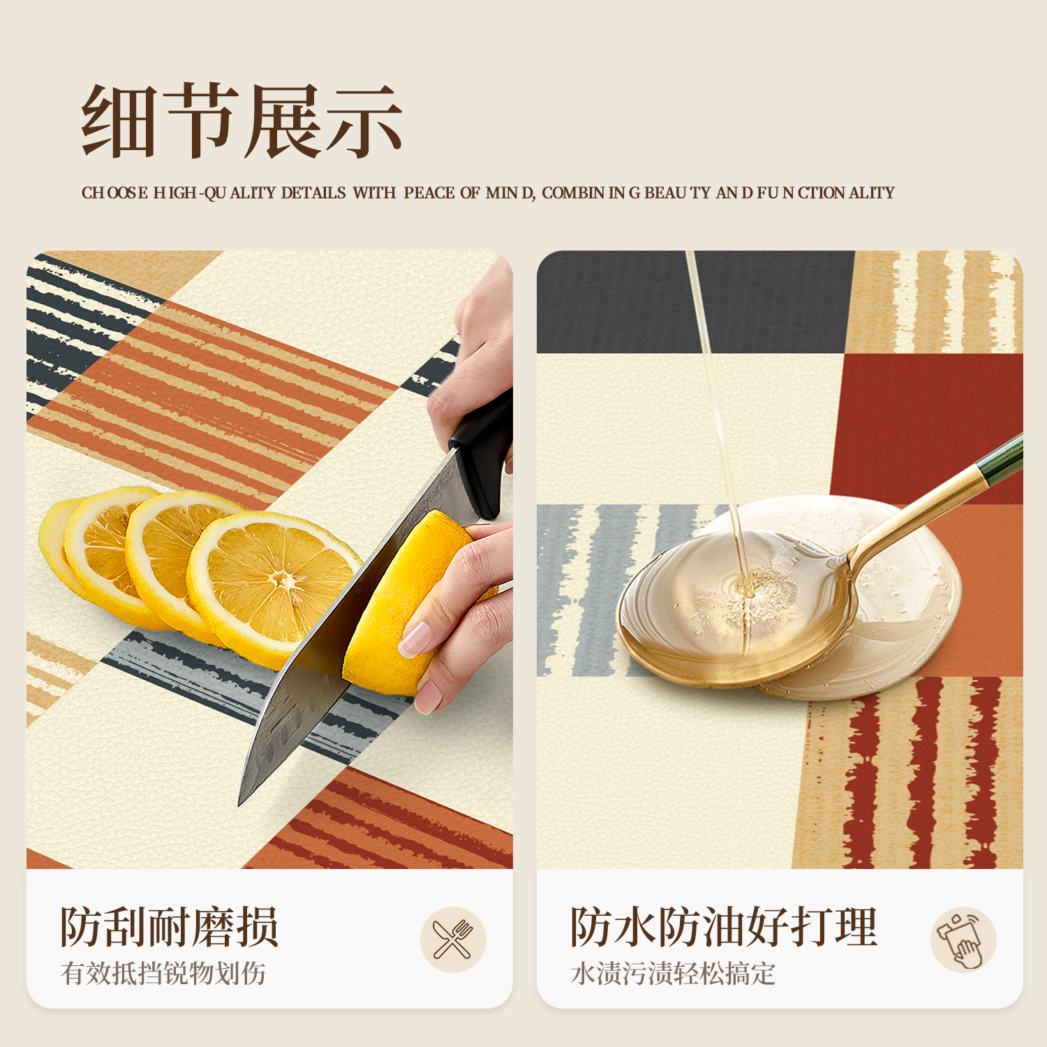 轻奢高级感中古风桌布餐桌垫防水防油防烫皮革法式 复古免洗茶几垫