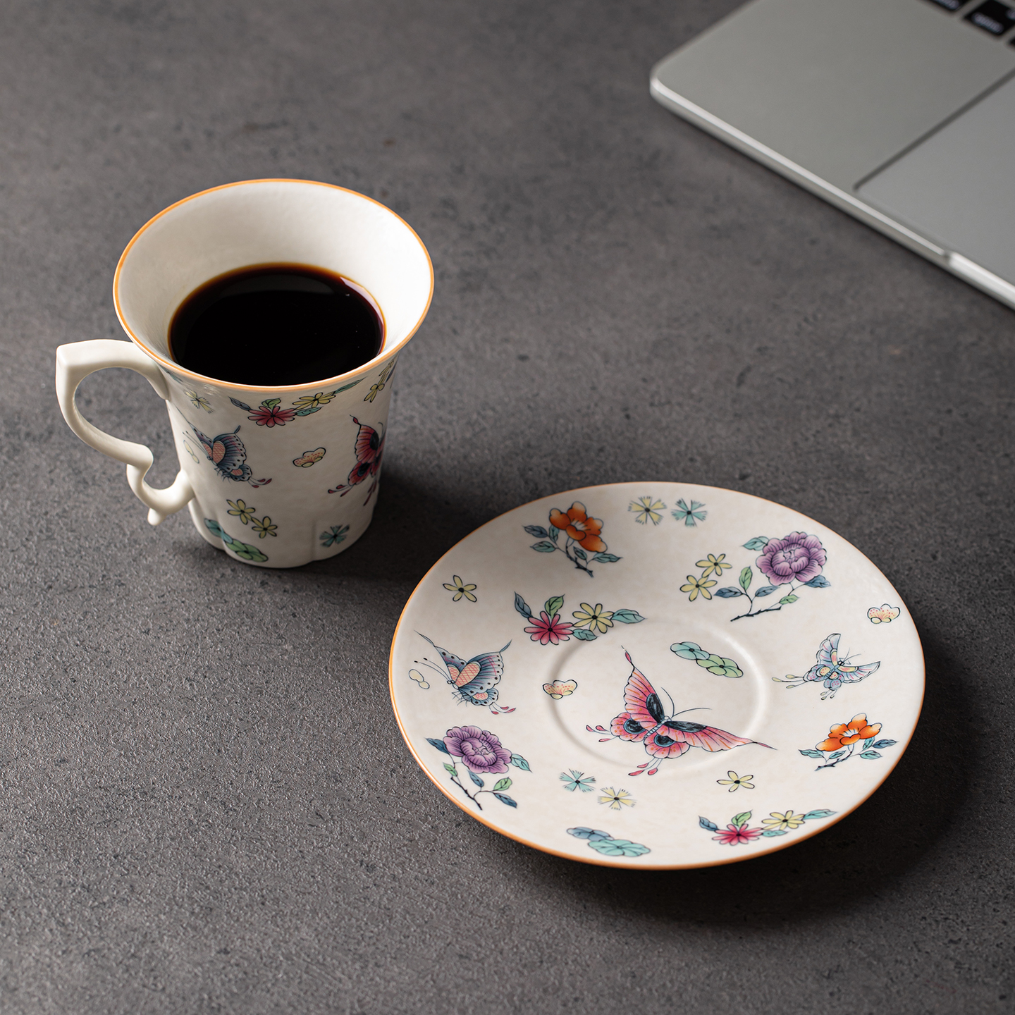 舍里高级感复古咖啡杯碟套装 创意粗陶拉花杯子家用高档精致马克杯