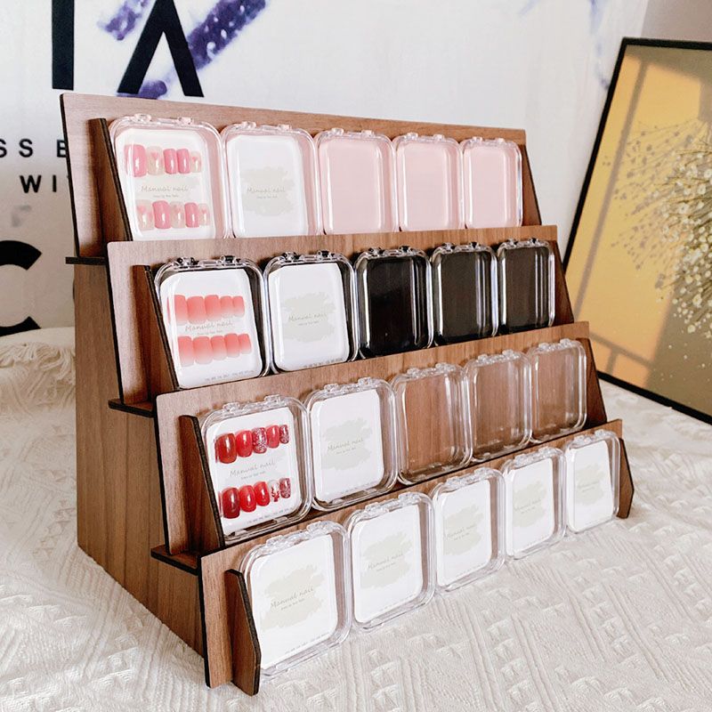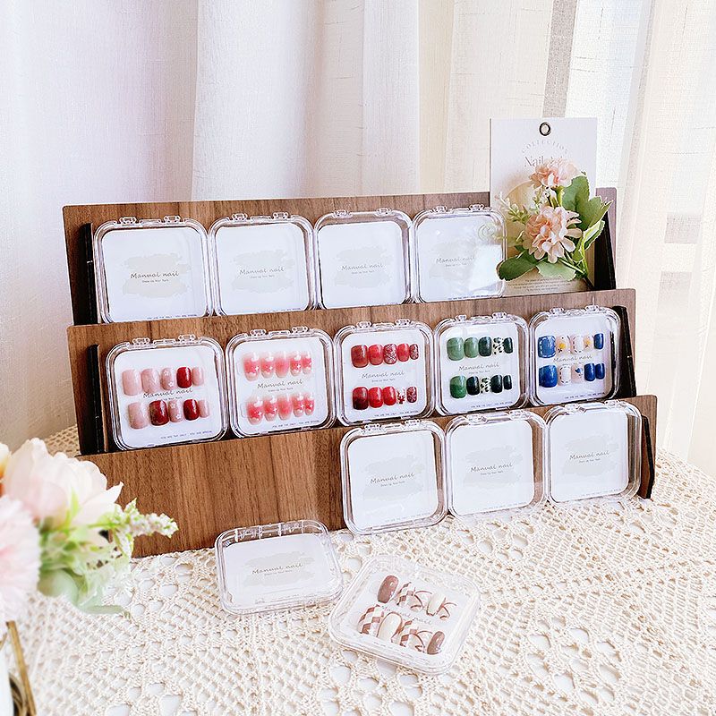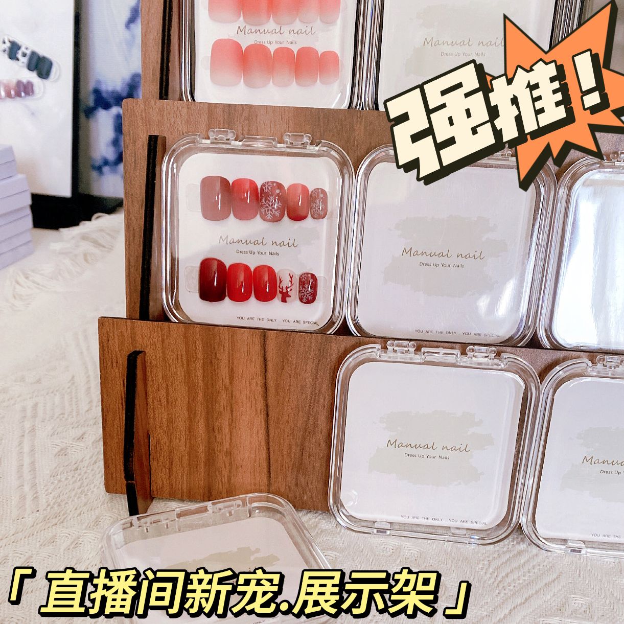 美甲直播间手工穿戴甲盒子展示架子可拆卸新胡桃色高端柜台展示板