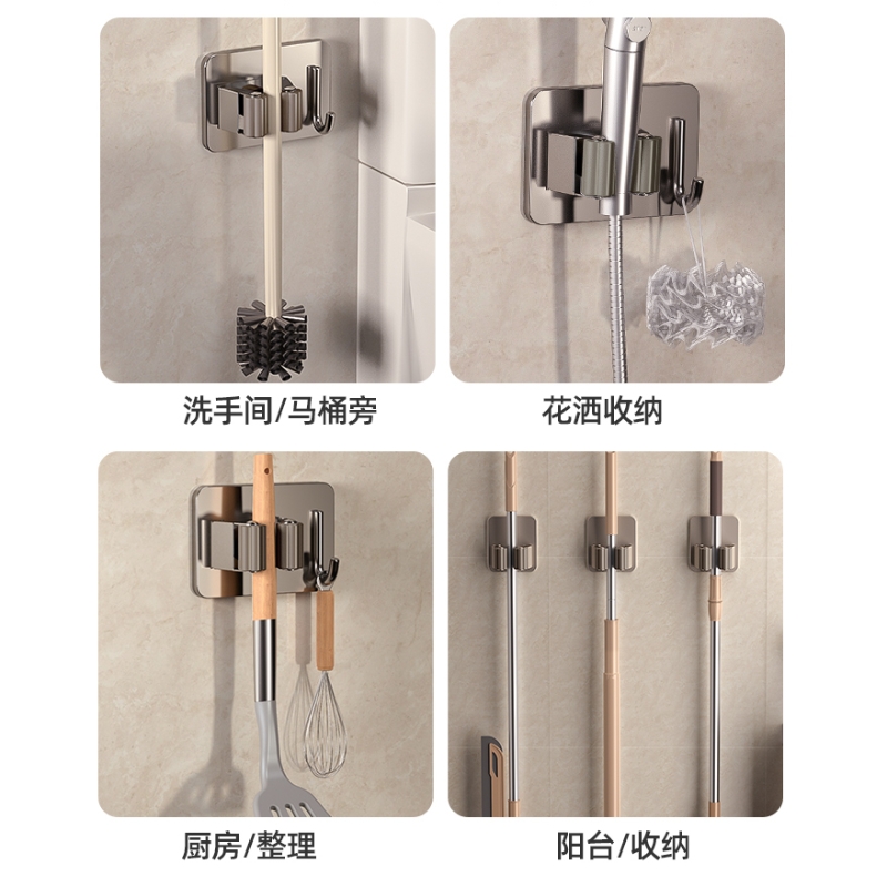 不锈钢连排挂钩厨房墙壁排钩浴室挂衣架可打孔强力承重304一排钩