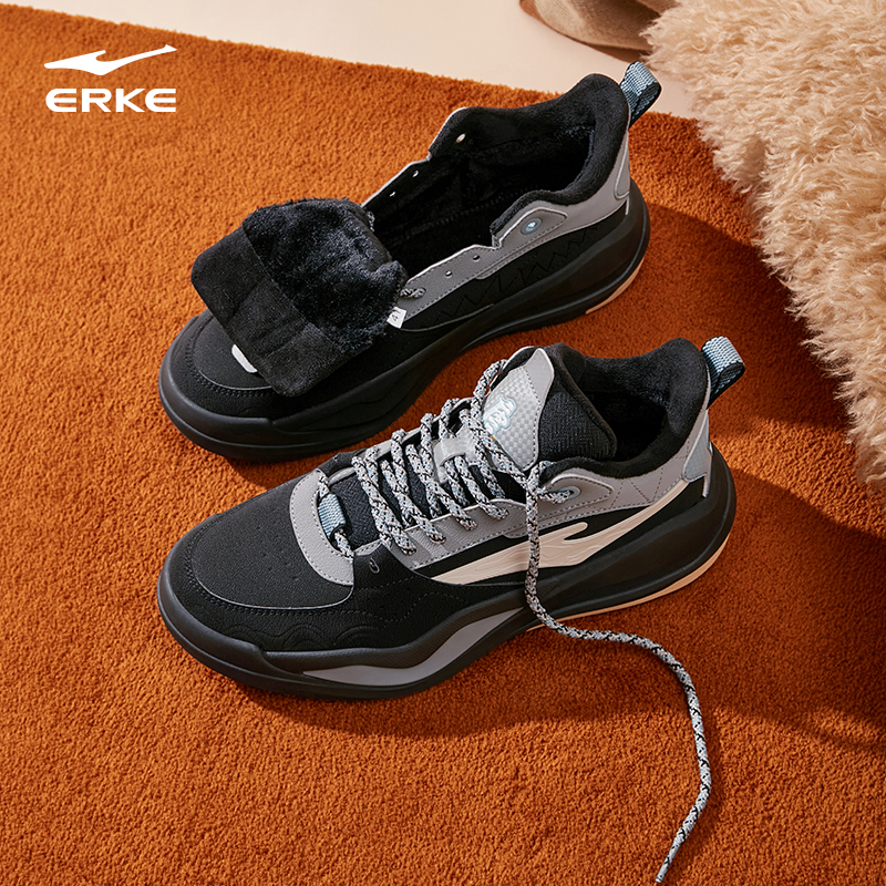 皮面厚底休闲鞋 加绒高帮保暖棉鞋 2025冬季 唐宫夜苑4鸿星尔克男鞋