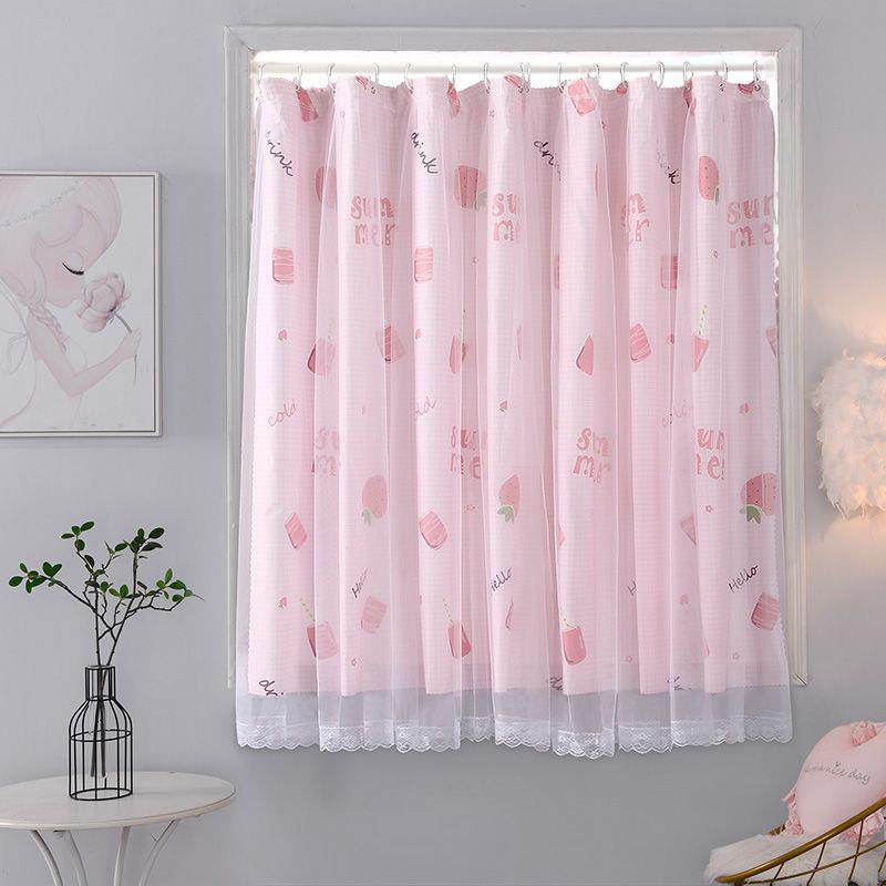 免打孔窗帘布遮光遮阳租房专用窗帘半帘挂钩北欧简约隔热防晒短帘