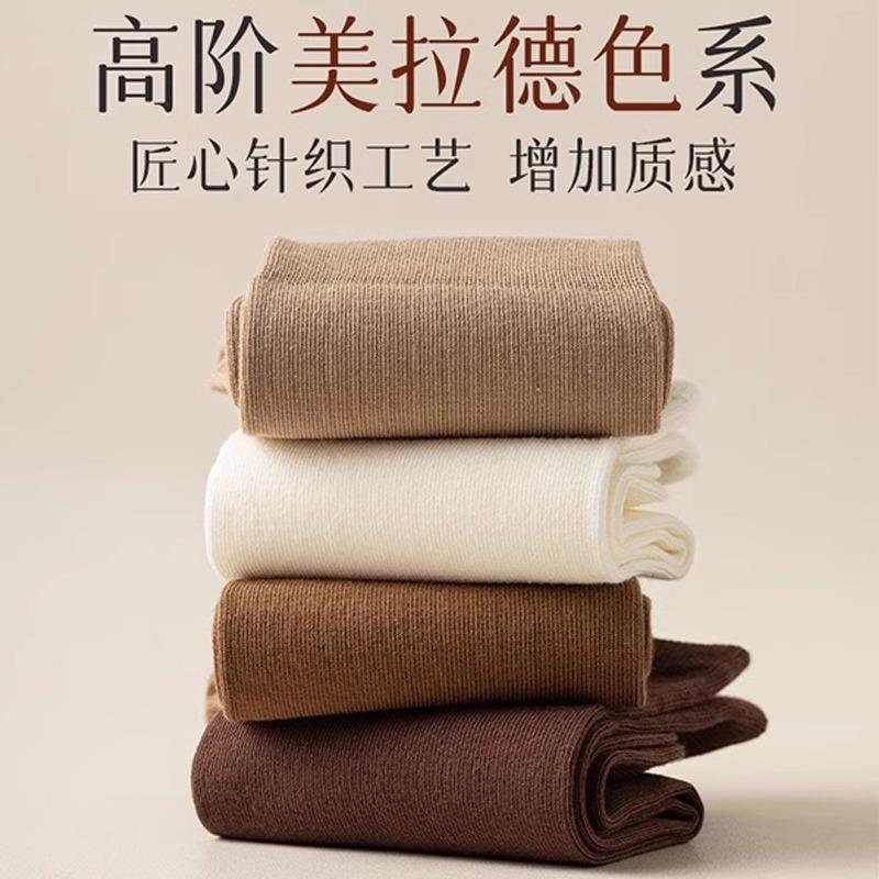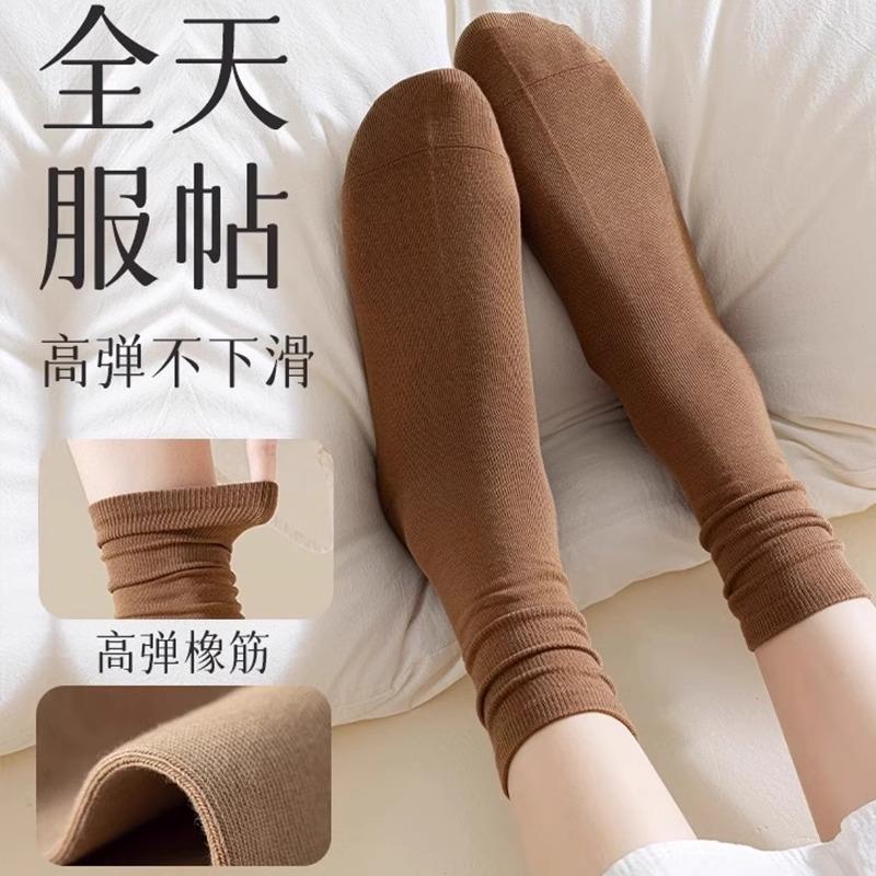袜子女中筒袜春秋款 秋冬咖色长筒长袜 美拉德棕色堆堆袜搭配小皮鞋