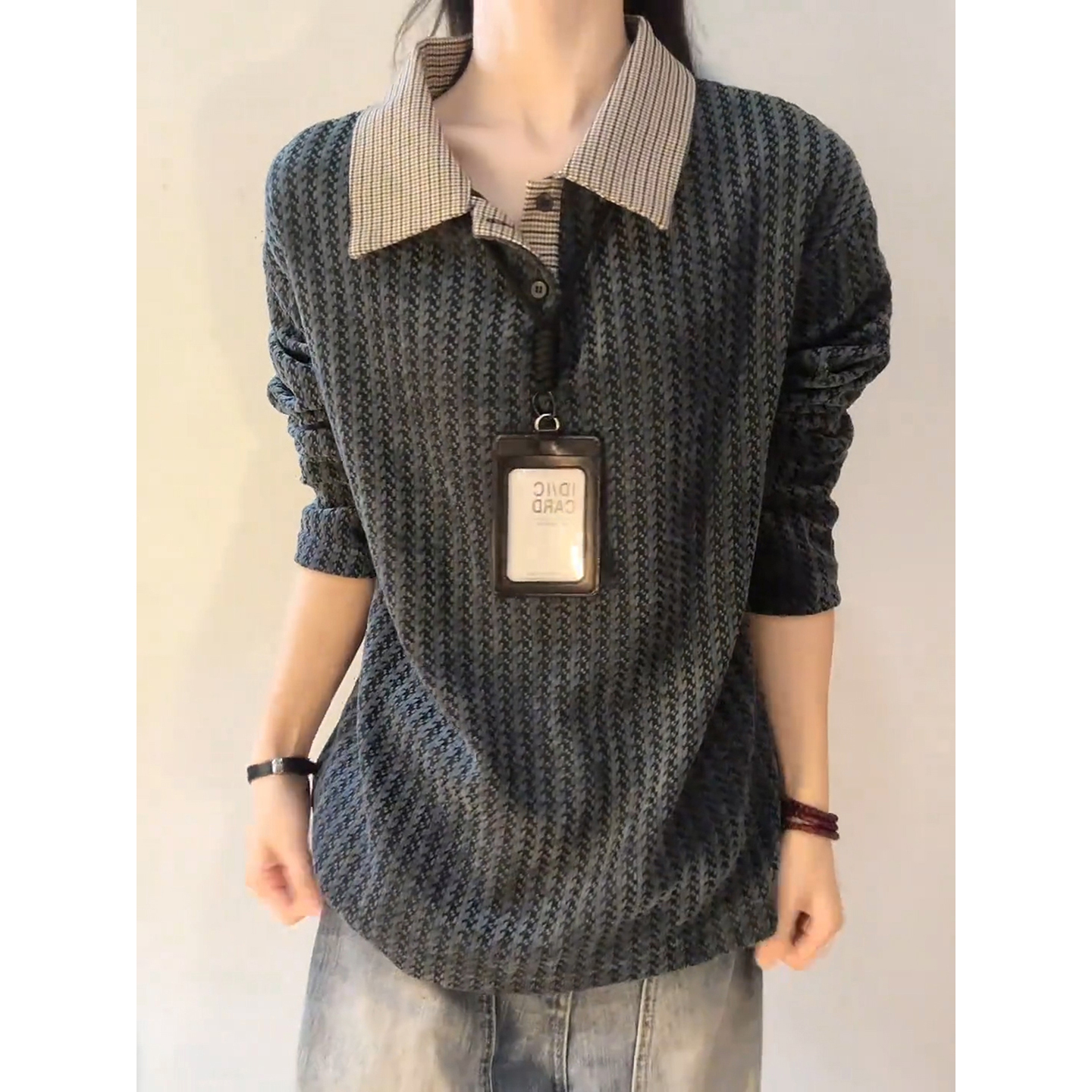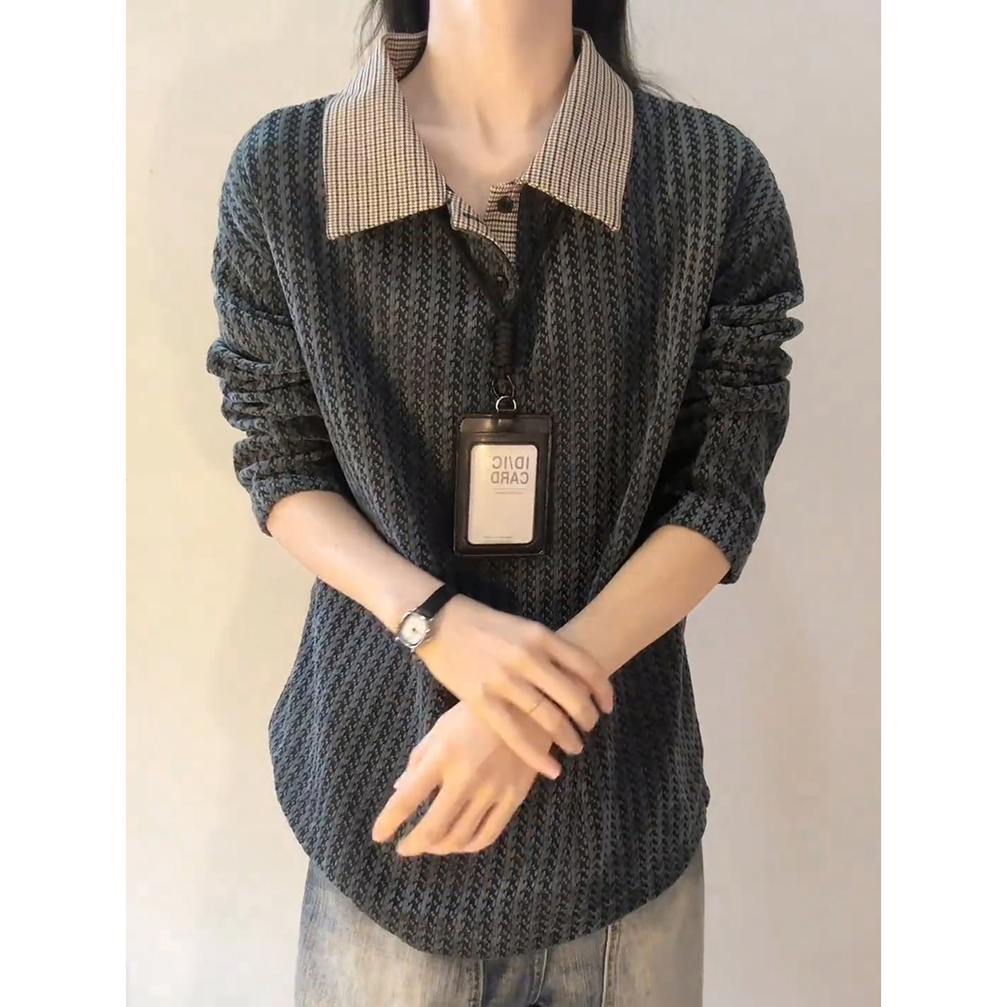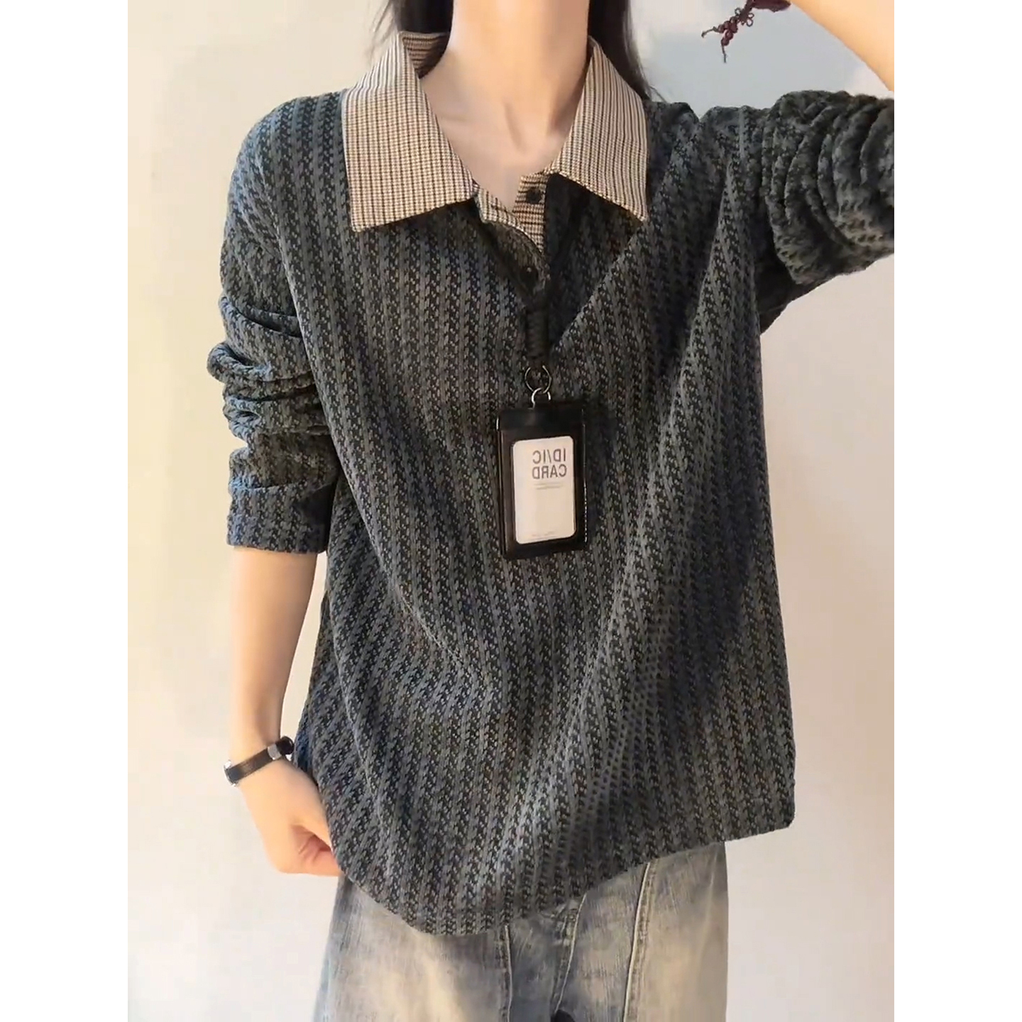 ER泽西风徽章华夫格条纹撞色立领卫衣外套运动套装 明星同款