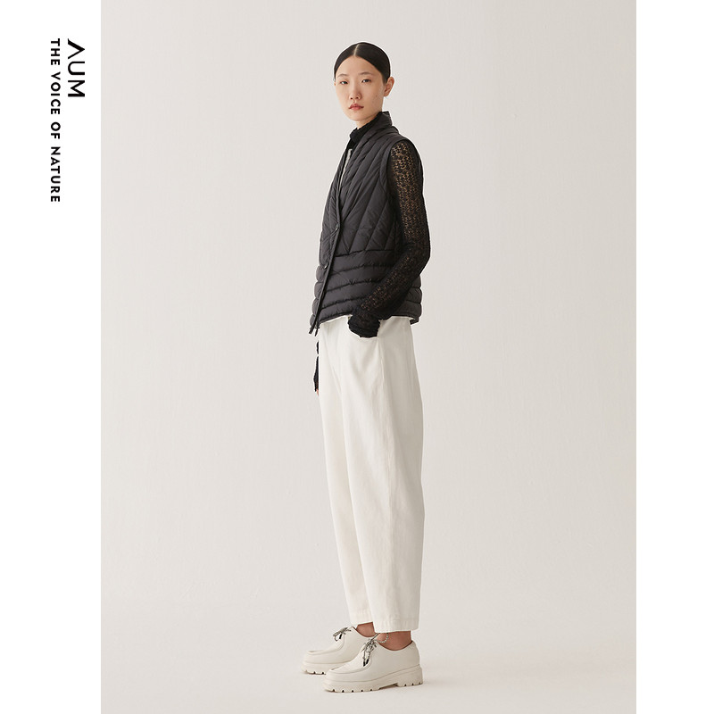 黑色休闲高领无袖 AUM噢姆冬季 鹅绒羽绒服马甲外套女 商场同款