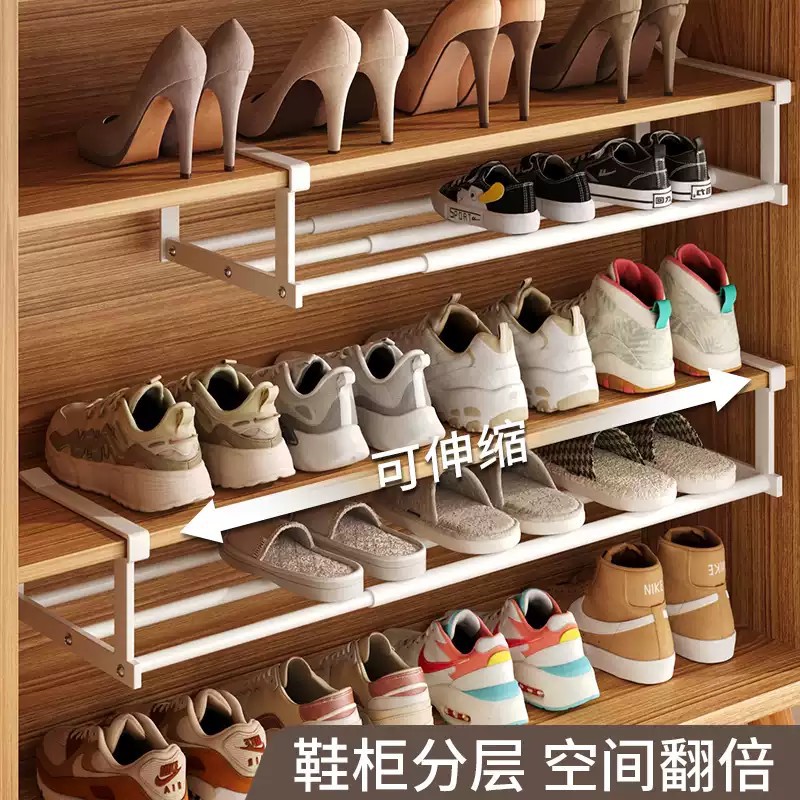托下挂篮置物架整理鞋 柜分层隔板鞋 子托架省空间 架家用鞋 可伸缩鞋