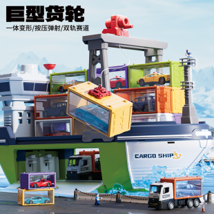 益智儿童玩具男孩生日礼物 箱合金小车过家家套装 新款 巨型轮船集装