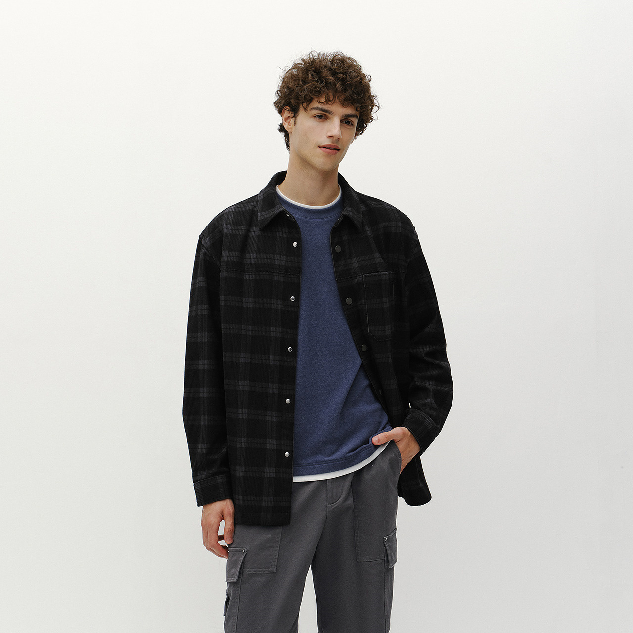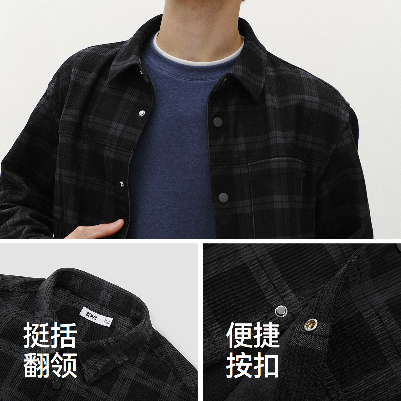 Achock官方店 衬衫 美式 长袖 上衣男 街头格纹泡泡纱衬衣潮牌新款