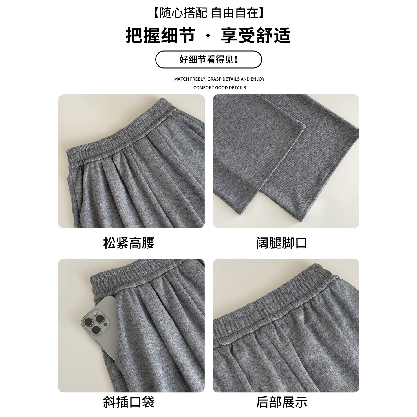 商品标签:灰色阔腿裤