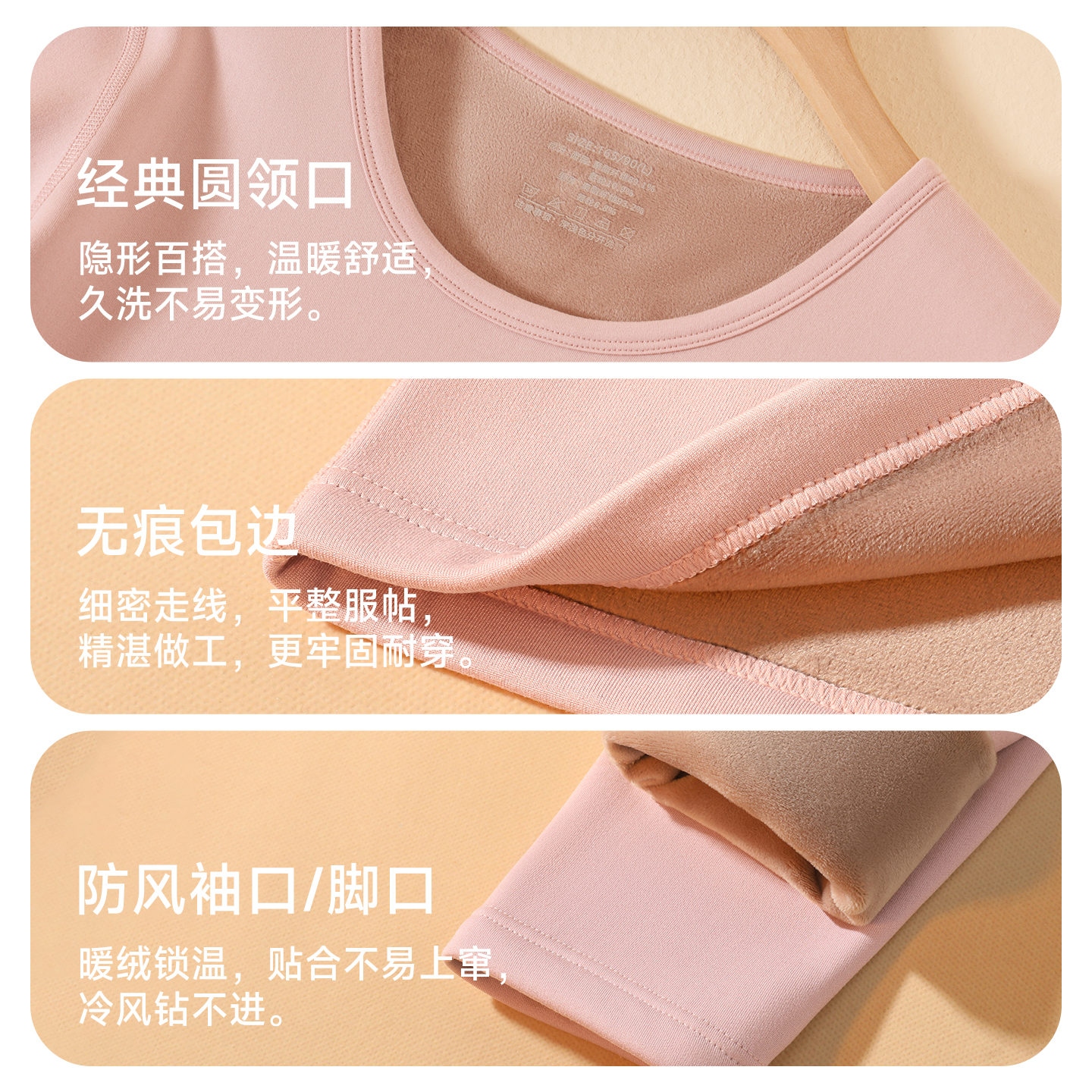 一体绒冬防寒厚款 秋衣打底衫 上衣 修身 古今保暖内衣女加绒加厚套装