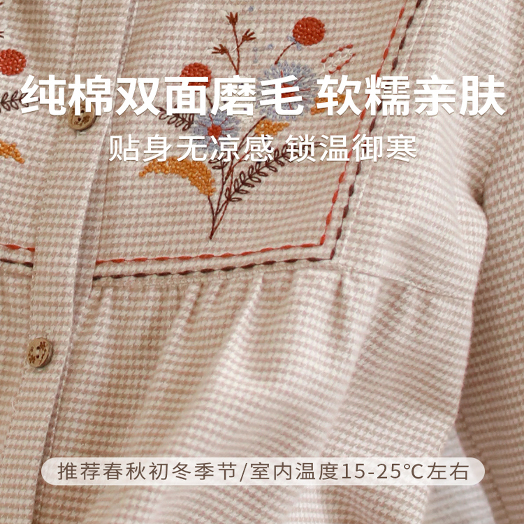 可外穿全棉家居服 套装 2025新款 高级感格子纯棉磨毛刺绣睡衣女长袖