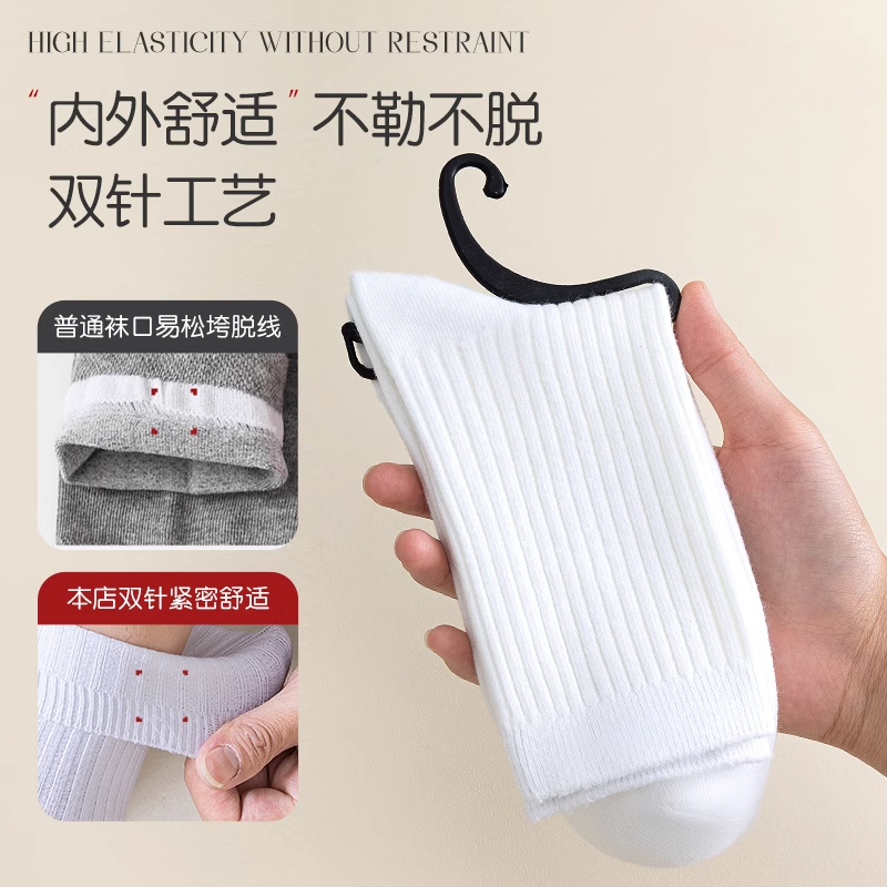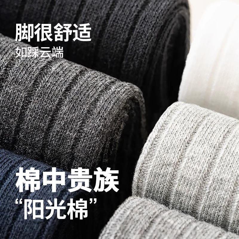 袜子男款 吸汗透气棉袜黑白色新疆棉长袜黑色 纯棉防臭中筒袜秋冬季