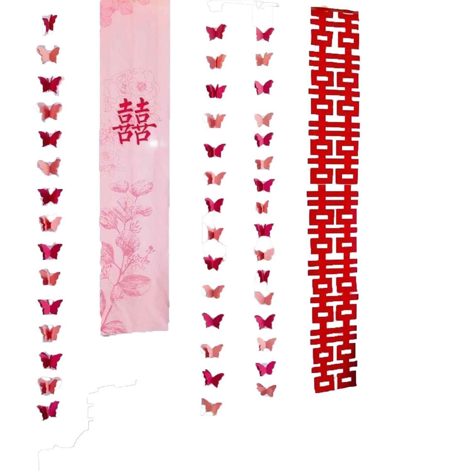 婚礼家庭布置装 喜字婚礼结婚窗帘长条拉花卧室客厅拍照道具 饰套装