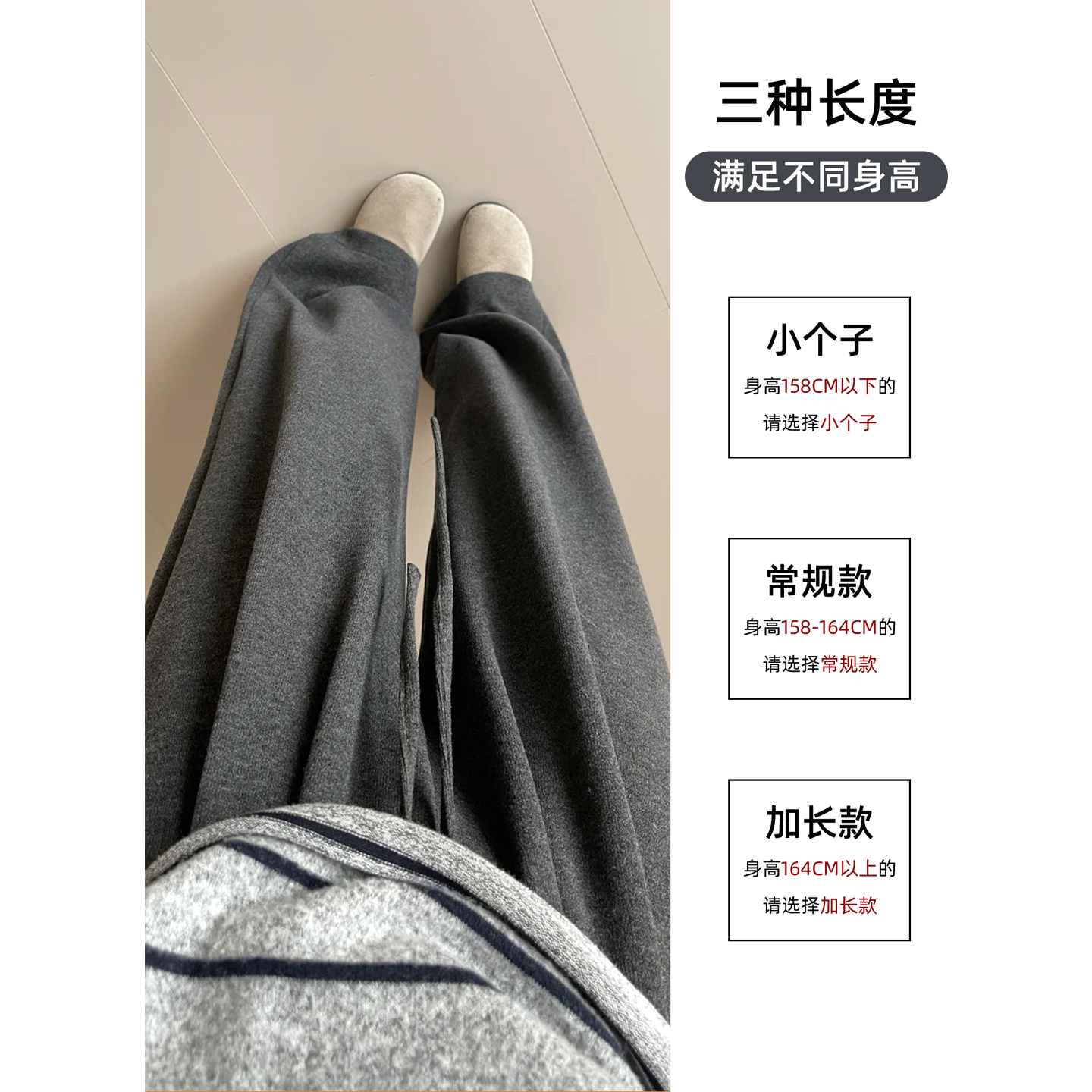 子 秋冬休闲直筒小个子垂坠感软糯灰色加绒阔腿裤 糯米裤 女2025新款
