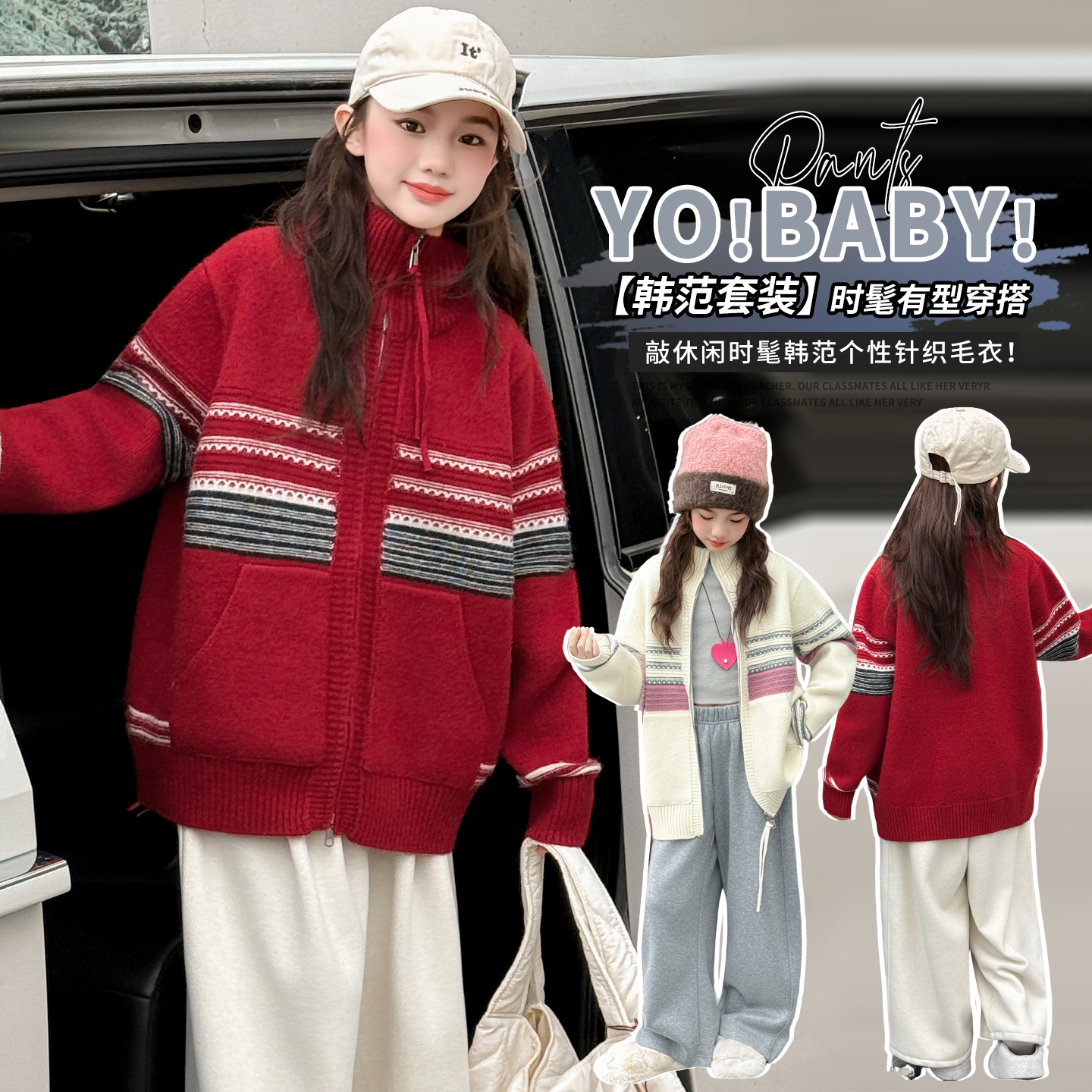 女2025秋季 百家好撞色双头拉链针织开衫 刺绣毛衣外套 House Basic