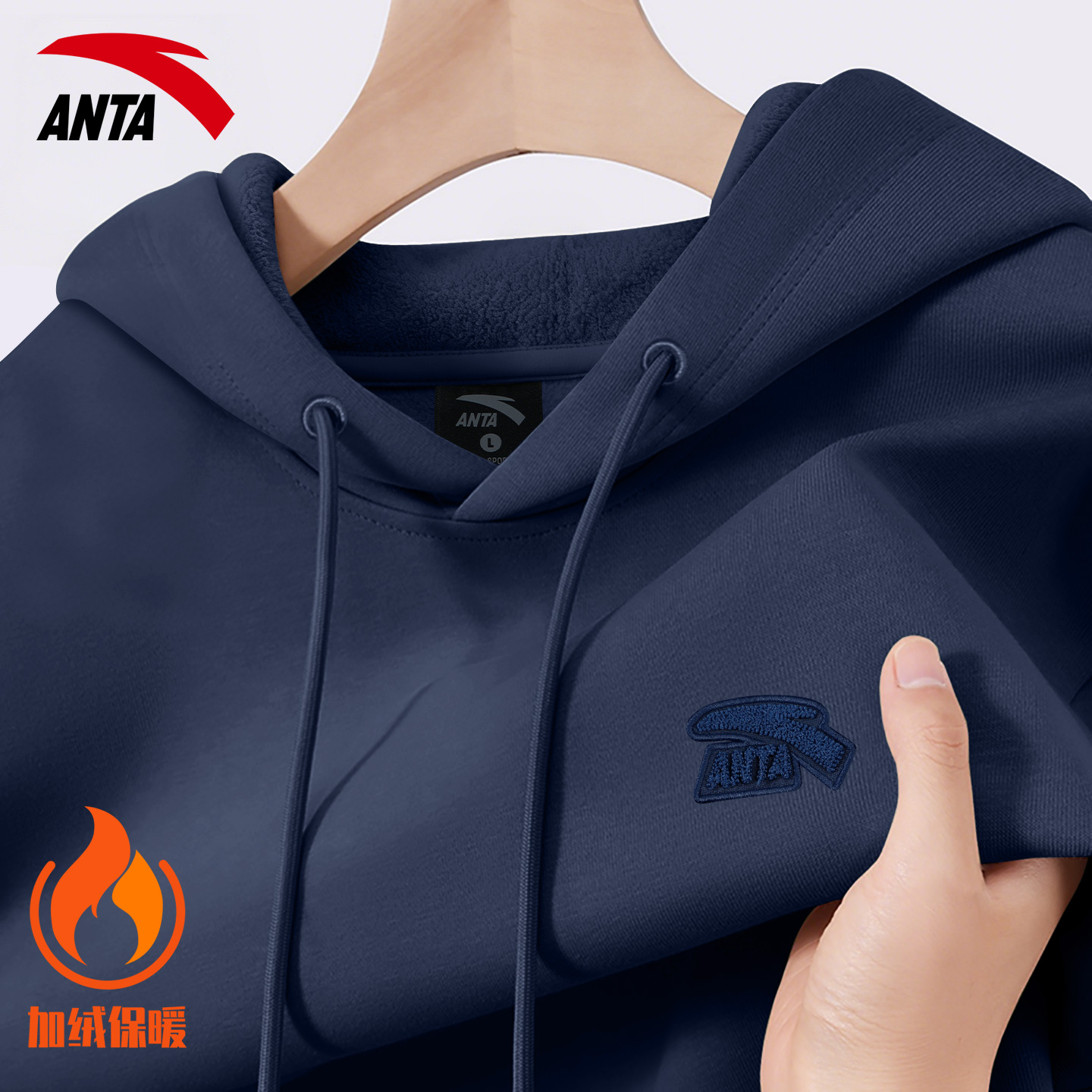 帽衫 安踏加绒连帽卫衣男女款 T美式 酒红色宽松情侣长袖 2025秋冬季