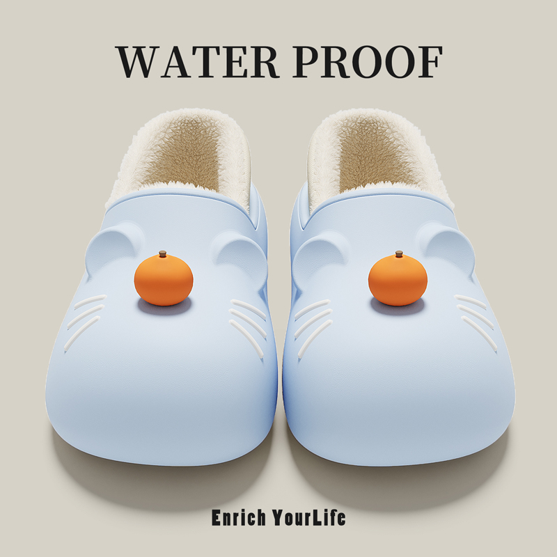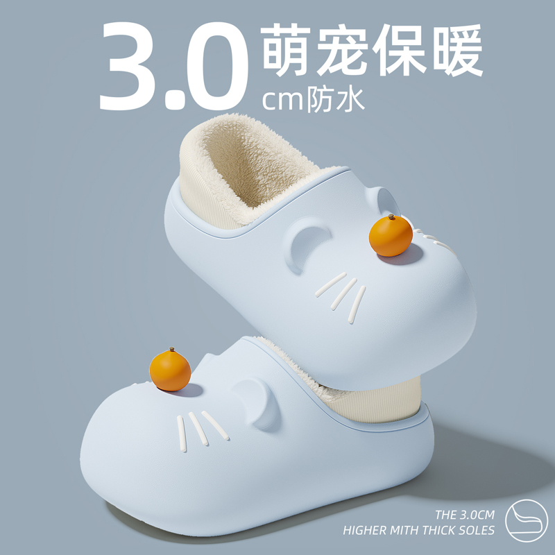 室内家居厚底防滑保暖毛毛绒亲子棉鞋 防水卡通棉拖鞋 女士2025新款