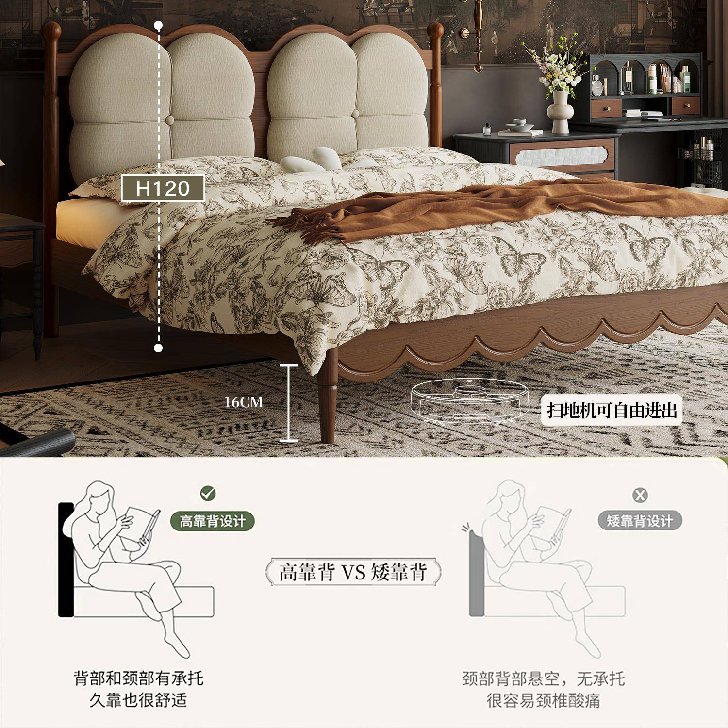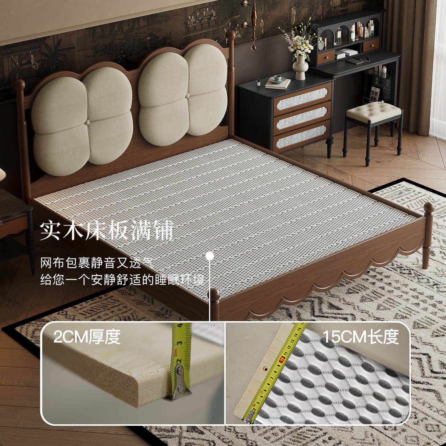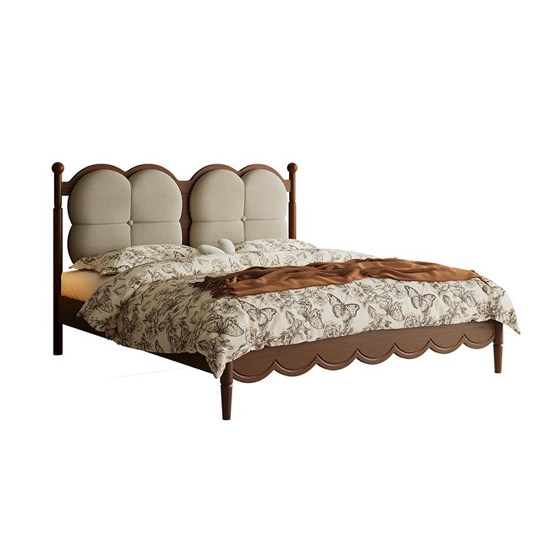 尔岚 1.8米双人床复古软包床1.5米婚床大床 中古风实木床主卧法式