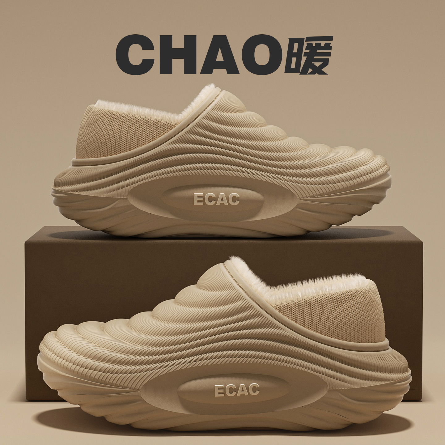 室内家居包跟毛绒保暖防滑外穿棉鞋 防水棉拖鞋 2025新款 秋冬季 男款