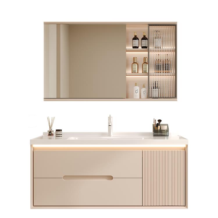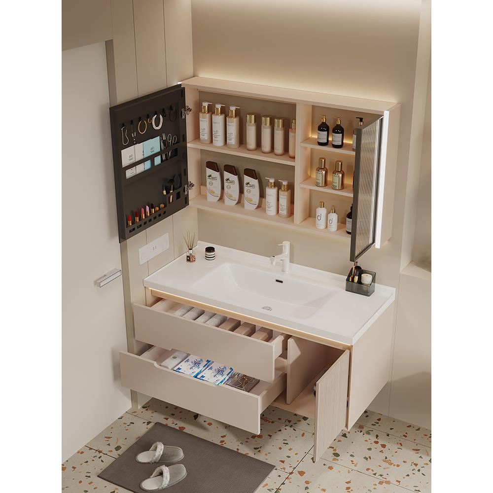 奶油风浴室柜陶瓷一体盆卫生间洗手盆洗脸盆柜组合洗手台盆卫浴柜