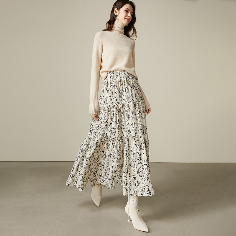 女 简约休闲毛衣气质高领纯色针织衫 晚白2025年秋冬新款 羊毛时尚