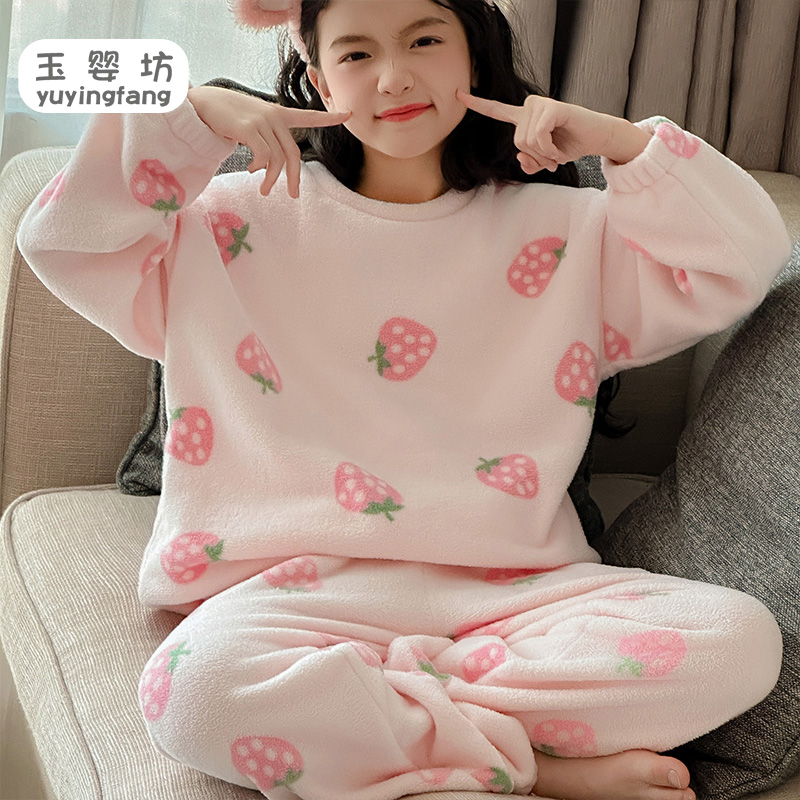 玉婴坊2025新款 女童睡衣大童法兰绒家居服初中生秋冬珊瑚绒加厚套