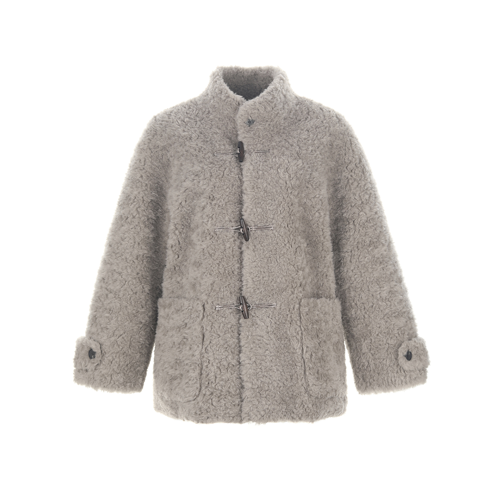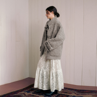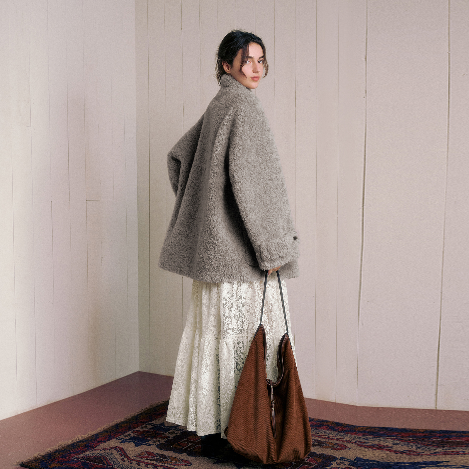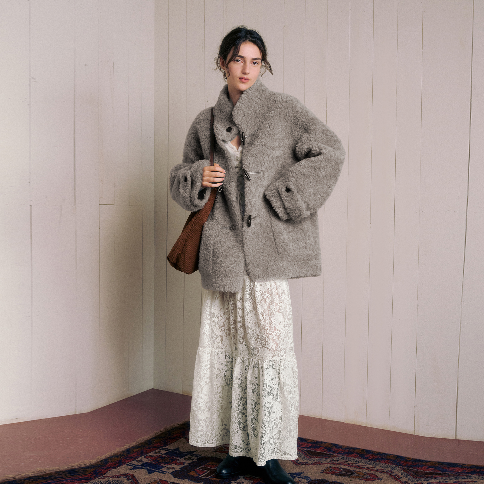 wana 灰色时髦休闲上衣女 try100%绵羊毛宽松皮毛一体外套25秋新品