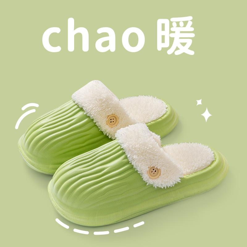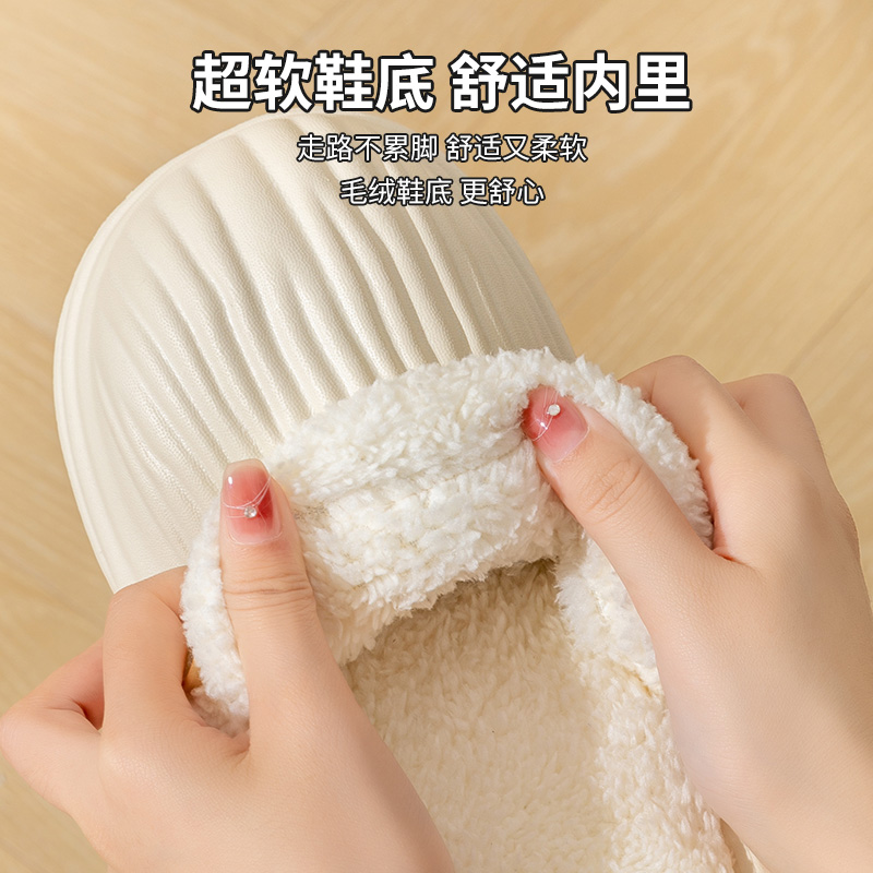 可外穿加绒室内家居保暖厚底防水防滑情侣拖鞋 居家棉拖鞋 女秋冬季