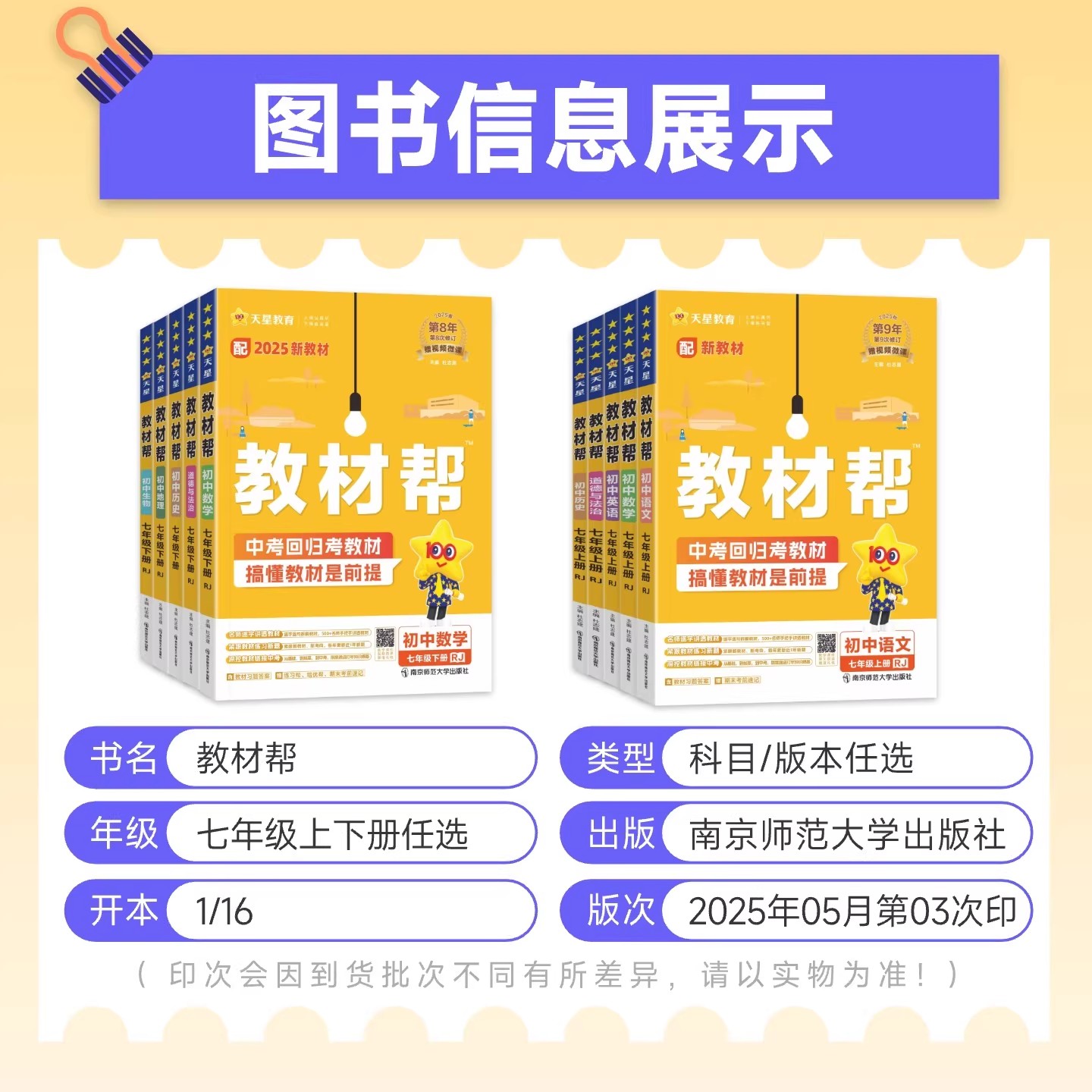 2025秋天星初中教材帮初一七年级上下册小四门政治道法历史地理生物人教版 教材同步课本一课一练7上会考必背知识点必刷题册 湘教版