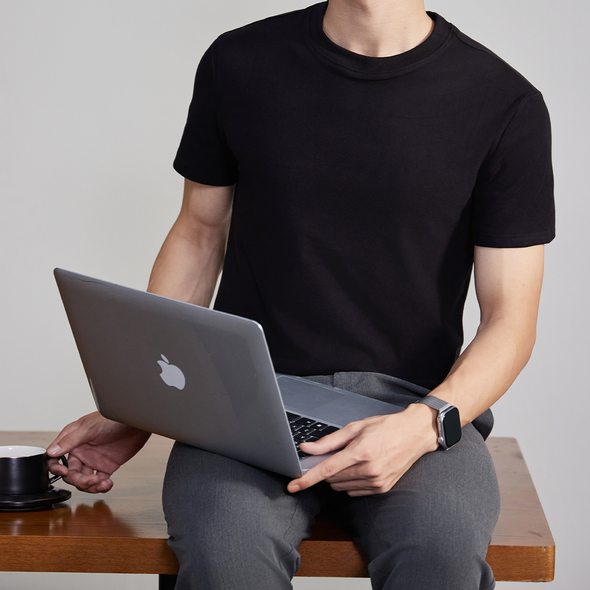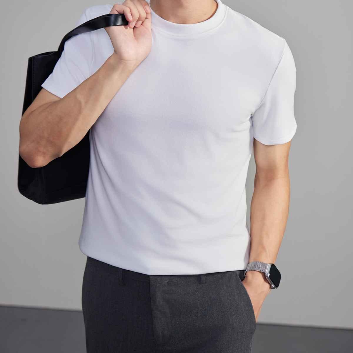 男冬季 衣服男生半袖 双面德绒男士 打底衫 上衣 t恤内搭男款 黑色短袖