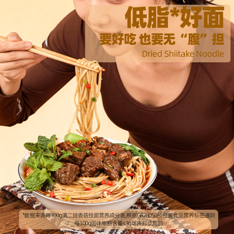 滇二娃香菇面条低脂儿童早餐减0碱水面营养代餐速食挂面杂粮主食