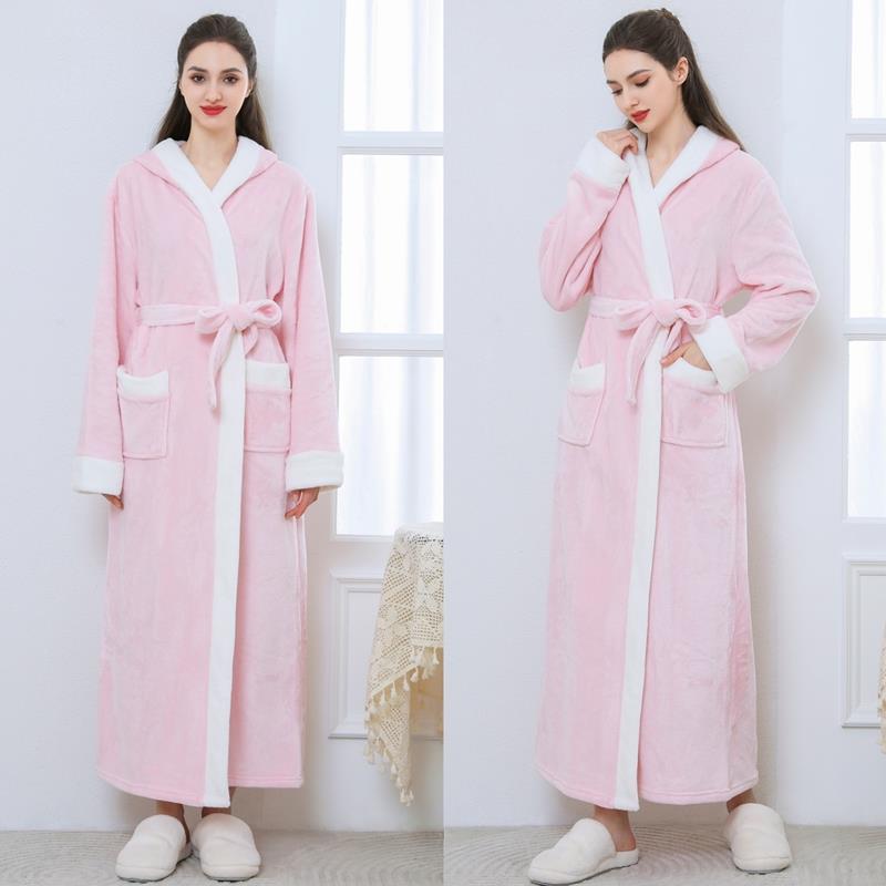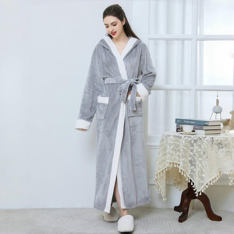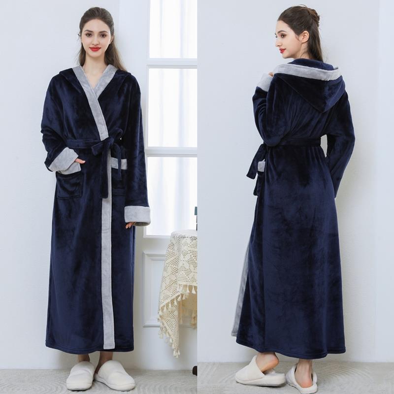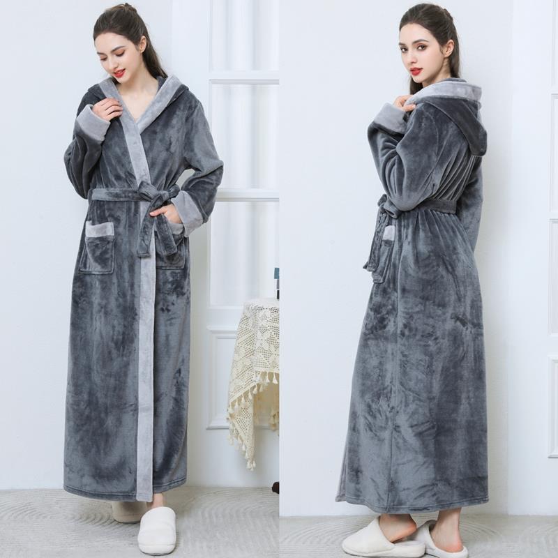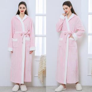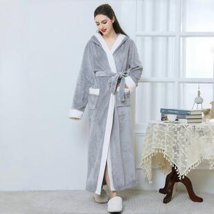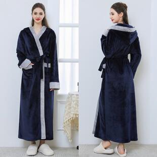 连帽睡衣男士 法兰绒家居服2025新款 1009c 加长款 秋冬睡袍女秋冬款