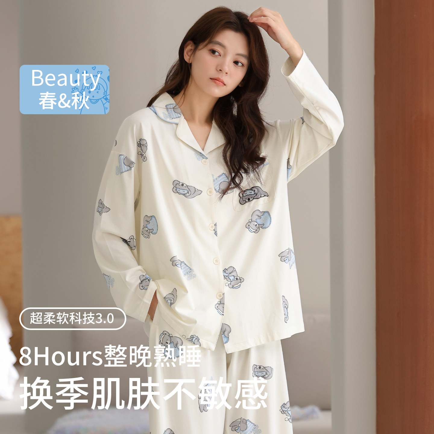 甜美可外穿家居服套装 猫人纯棉长袖 开衫 2025秋新款 睡衣女士春秋季