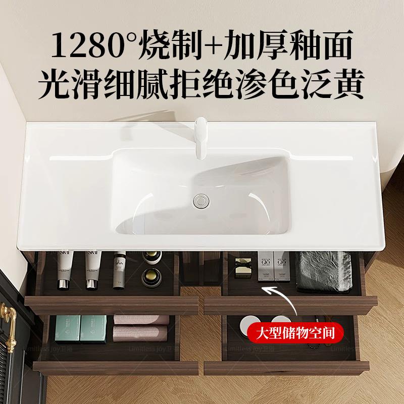 中古风浴室柜陶瓷一体盆卫生间洗手盆柜组合洗漱台洗脸盆柜卫浴柜