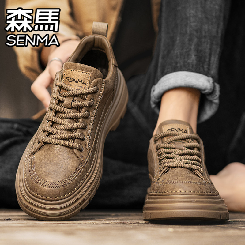 男鞋 子软弹平底鞋 厚底增高情侣休闲鞋 女鞋 革面 运动鞋 特步秋冬板鞋