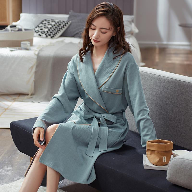 睡袍女士睡衣秋款 长袖 浴袍妈妈家居服晨袍1009c 薄款 秋冬睡裙长款