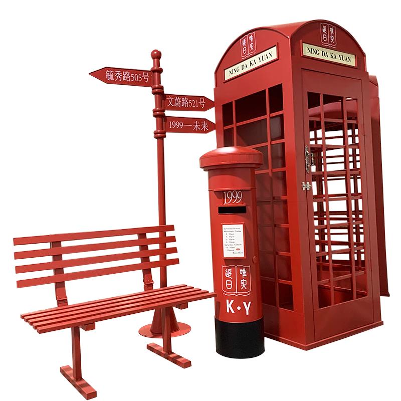 铁艺电话亭邮筒摆件大厅售楼落地场景展厅陈列装 饰商场DP布置道具
