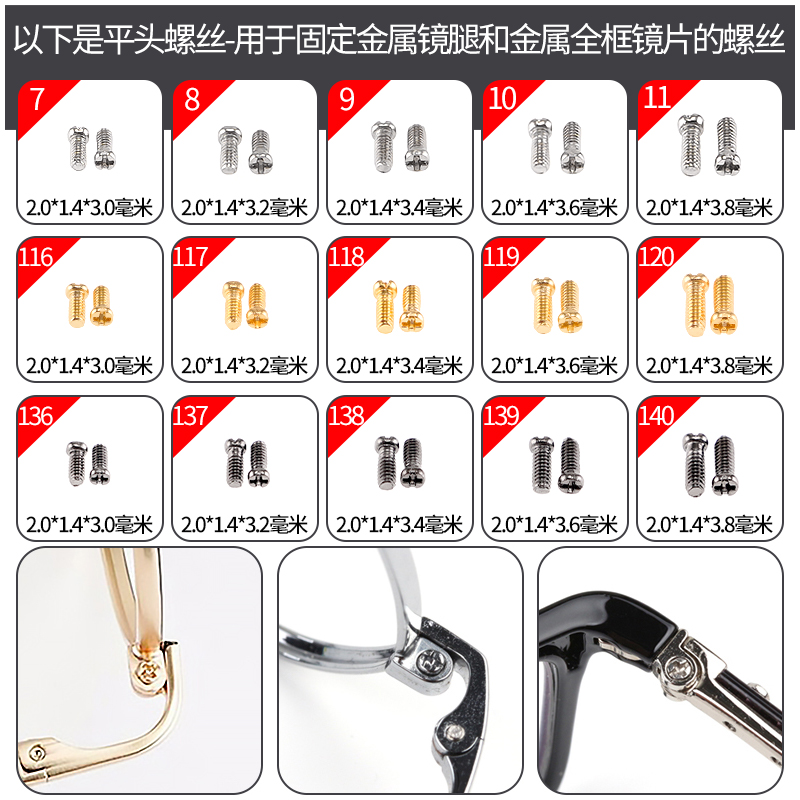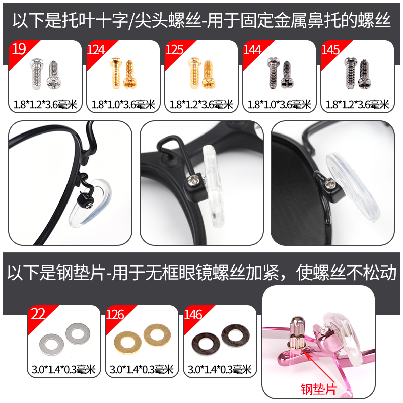 眼镜金色黑色枪色银色配镜螺丝螺母螺帽维修镜架专用铰链鼻托螺丝